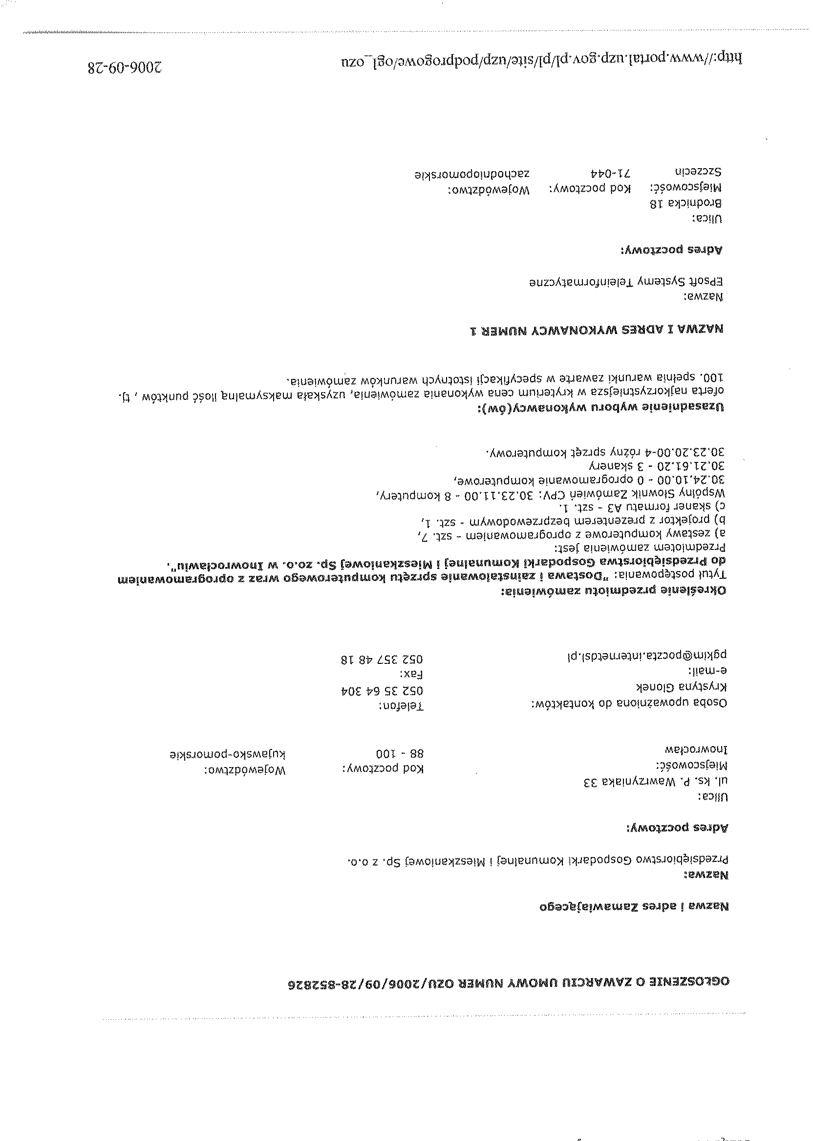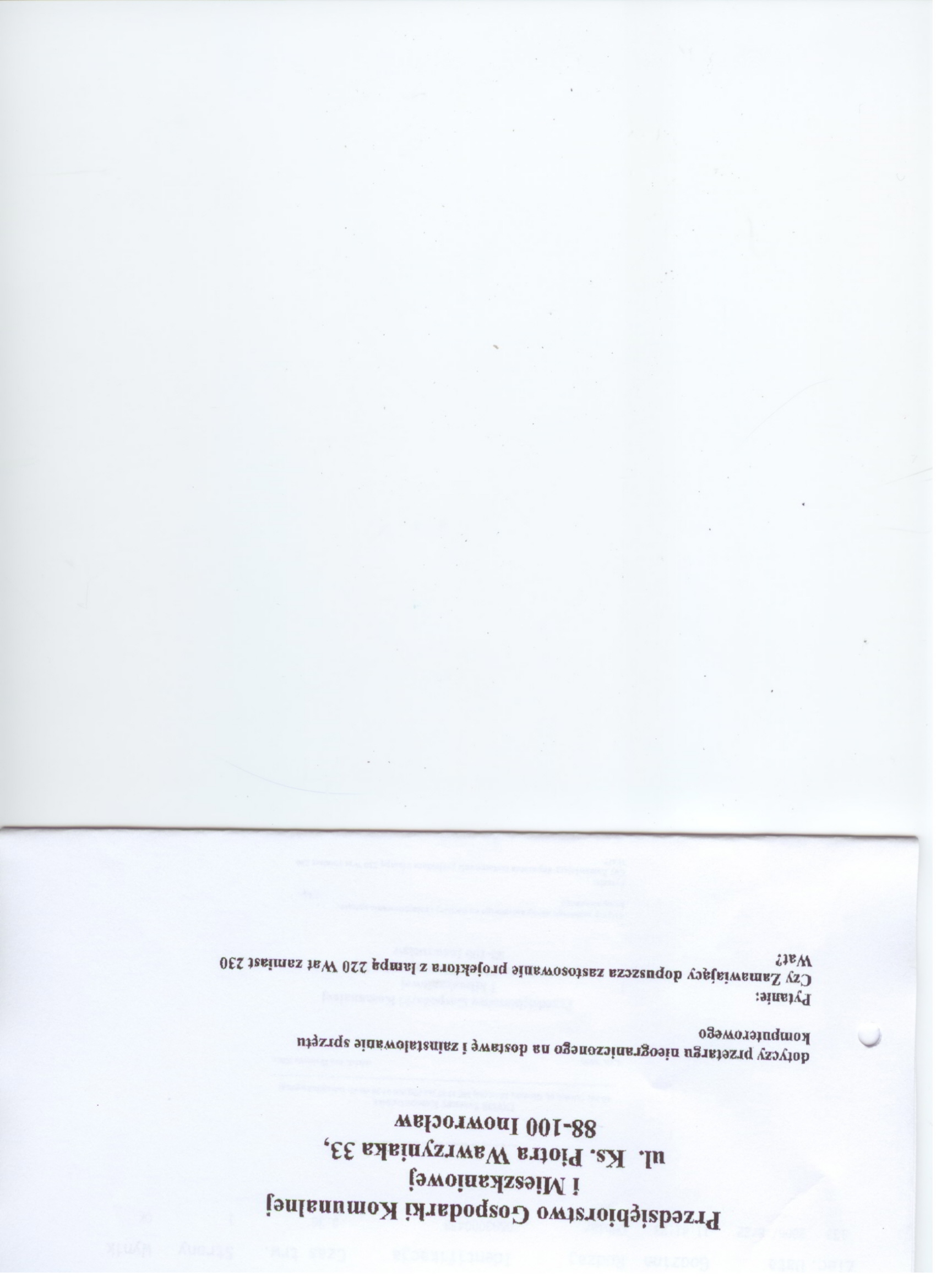 Okre艣lenie przedmiotu zam贸wienia: Tytu艂 post臋powania: „Dostawa i zainstalowanie sprz臋tu komuterowego wraz z oprogramowaniem do Przedsi臋biorstwa Gospodarki Komunalnej i Mieszkaniowej Sp.聽 z o. o. w Inowroc艂awiu“.