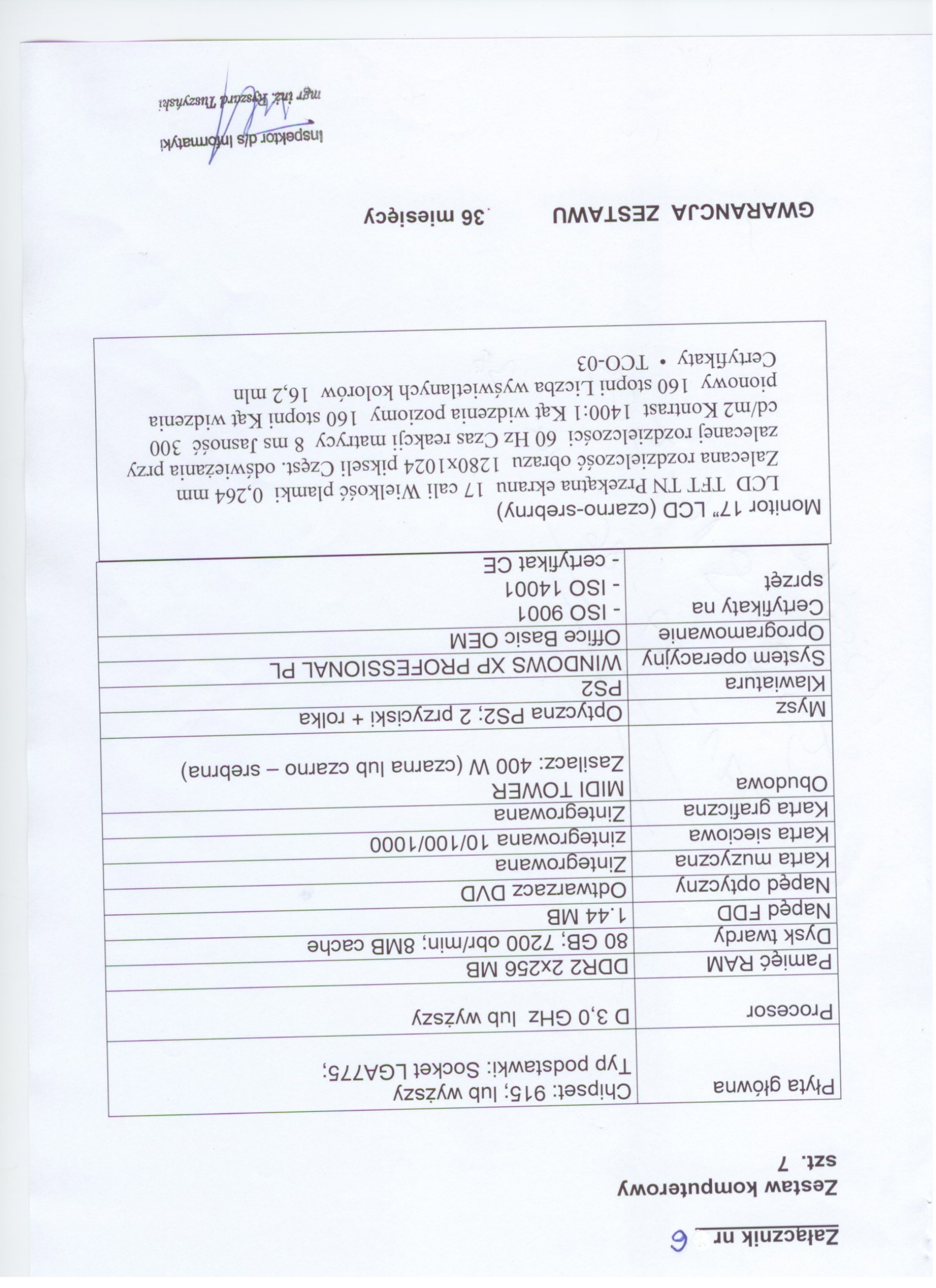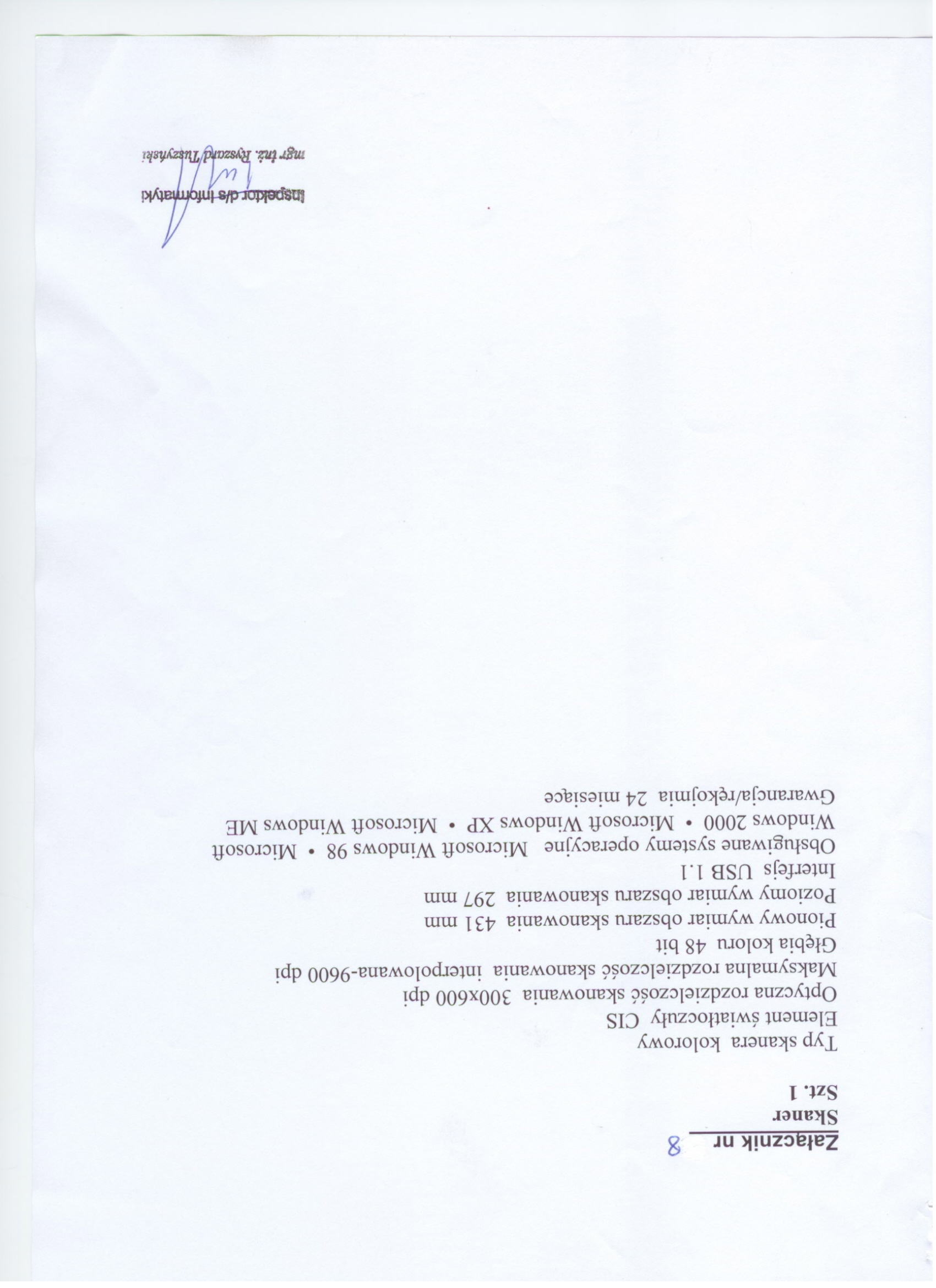 Przedmiotem zam贸wienia jest: a) zestawy komuterowe z oprogramowaniem – szt. 7 b) projektor z prezenterem bezprzewodowym – szt. 1 c) skaner formatu A3 – szt. 1. 聽 Wsp贸lny S艂ownik Zam贸wie艅 CPV: 30.23.11.00 – 8 komputery 30.24.10.00 – 0聽 oprogramowanie komputerowe 30.21.61.20 – 3聽 skanery komputerowe 30.23.20.00 – 4聽 r贸偶ny sprz臋t komputerowy 聽