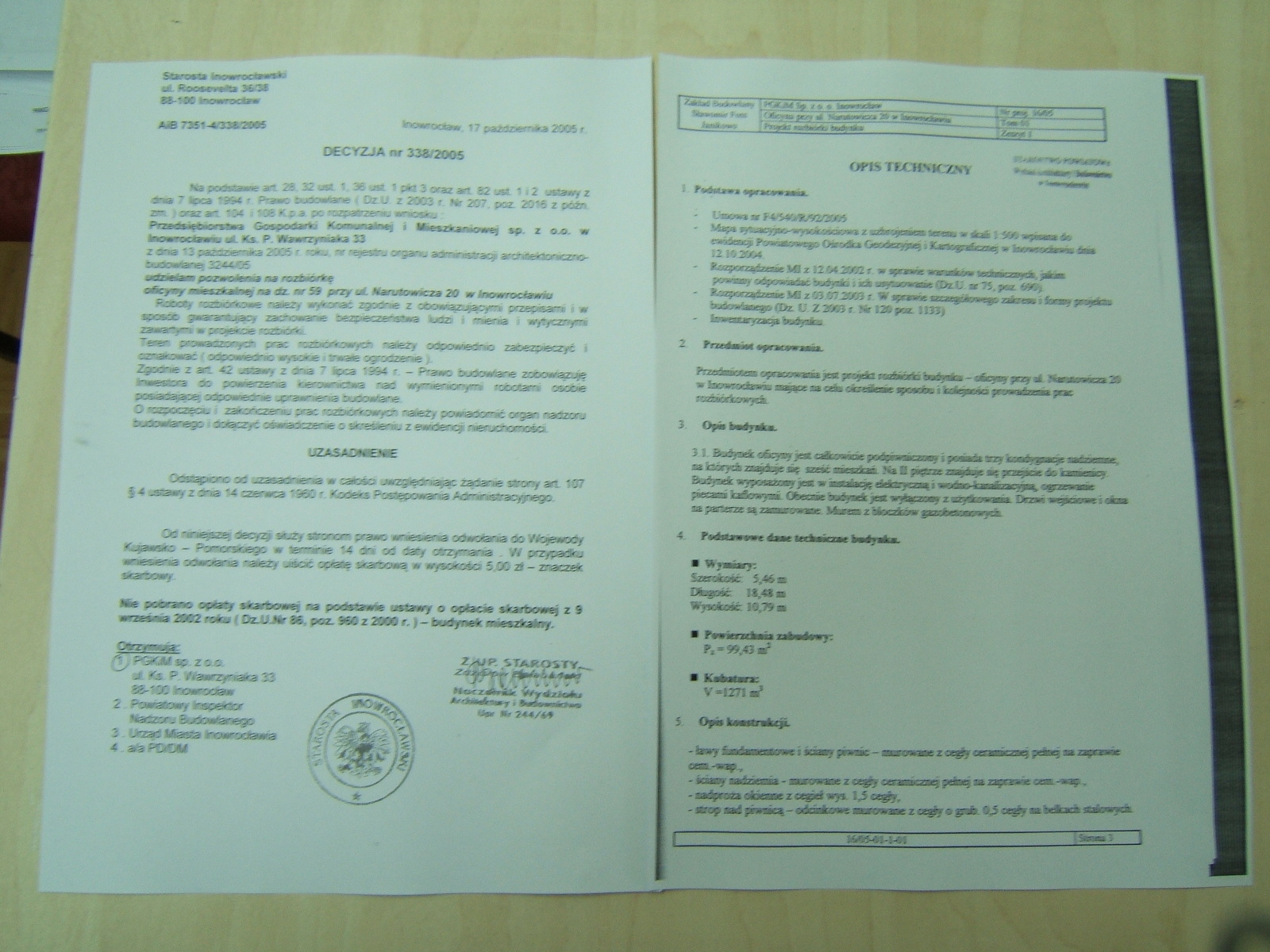 Tytu艂 post臋powania: „Rozbi贸rki budynk贸w mieszkalnych prz ulicach Wierzbi艅skiego 9, Narutowicza 9 A, Narutowicza 20 oraz Rybnicka 9 A w Inowroc艂awiu“. Przedmiot zam贸wienia obejmuje prace: od艂膮czenie budynk贸w od sieci zewn臋trznych, ogrodzenie oznakowanie terenu rozbi贸rki, zabezpieczenie o oznakowanie dr贸g, obej艣膰 i objazd贸w wraz z uzyskaniem wymaganych pozwole艅, demonta偶 instalacji wewn臋trznych, demonta偶 stolarki okiennej i drzwiowej, z odzyskaniem materia艂u nadaj膮cego si臋 do ponownego wbudowania, posegregowanie materia艂u z rozbi贸rki i wywiezienie z terenu, uporz膮dkowanie terenu. Przedmiot zam贸wienia zosta艂 podzielony na cztery zadania, z mo偶liwo艣ci膮 sk艂adania ofert cz臋艣ciowych. 聽