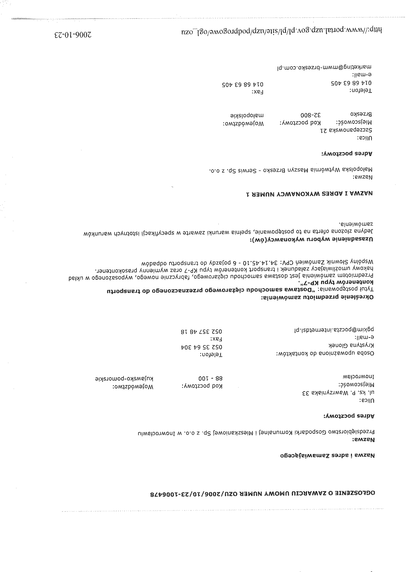 4.Kryteria oceny ofert: a) cena聽聽 - 100 % 聽聽聽聽聽聽聽聽聽聽聽聽聽聽聽聽聽聽聽聽聽聽聽聽聽聽聽聽聽聽聽聽聽聽聽聽聽聽聽聽聽聽聽聽聽聽聽聽 5.Termin sk艂adania ofert: Data: 11/09/2006聽 godz. 9.30聽聽 -聽 otwarcie: 11/09/2006, godz. 10.00 聽