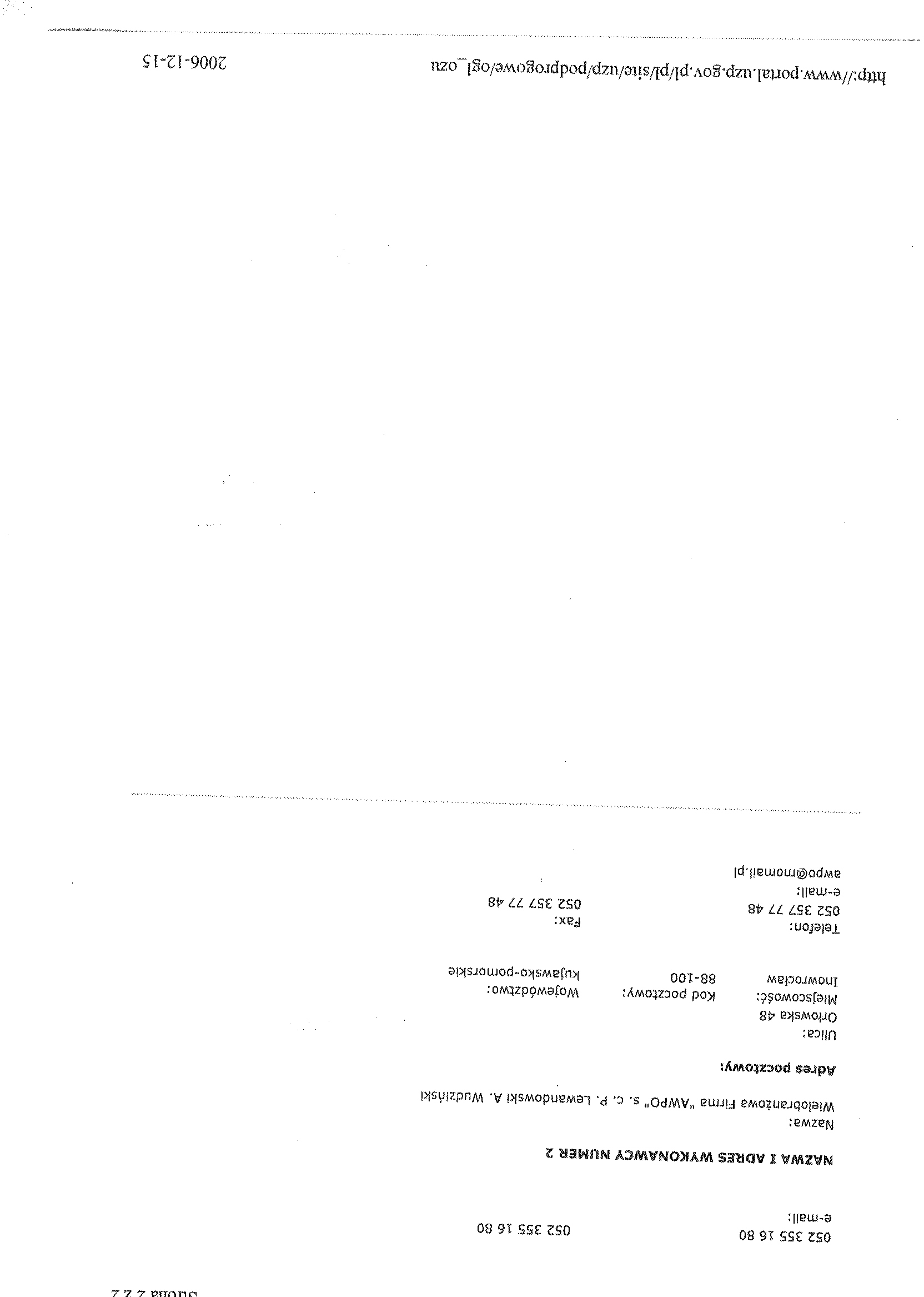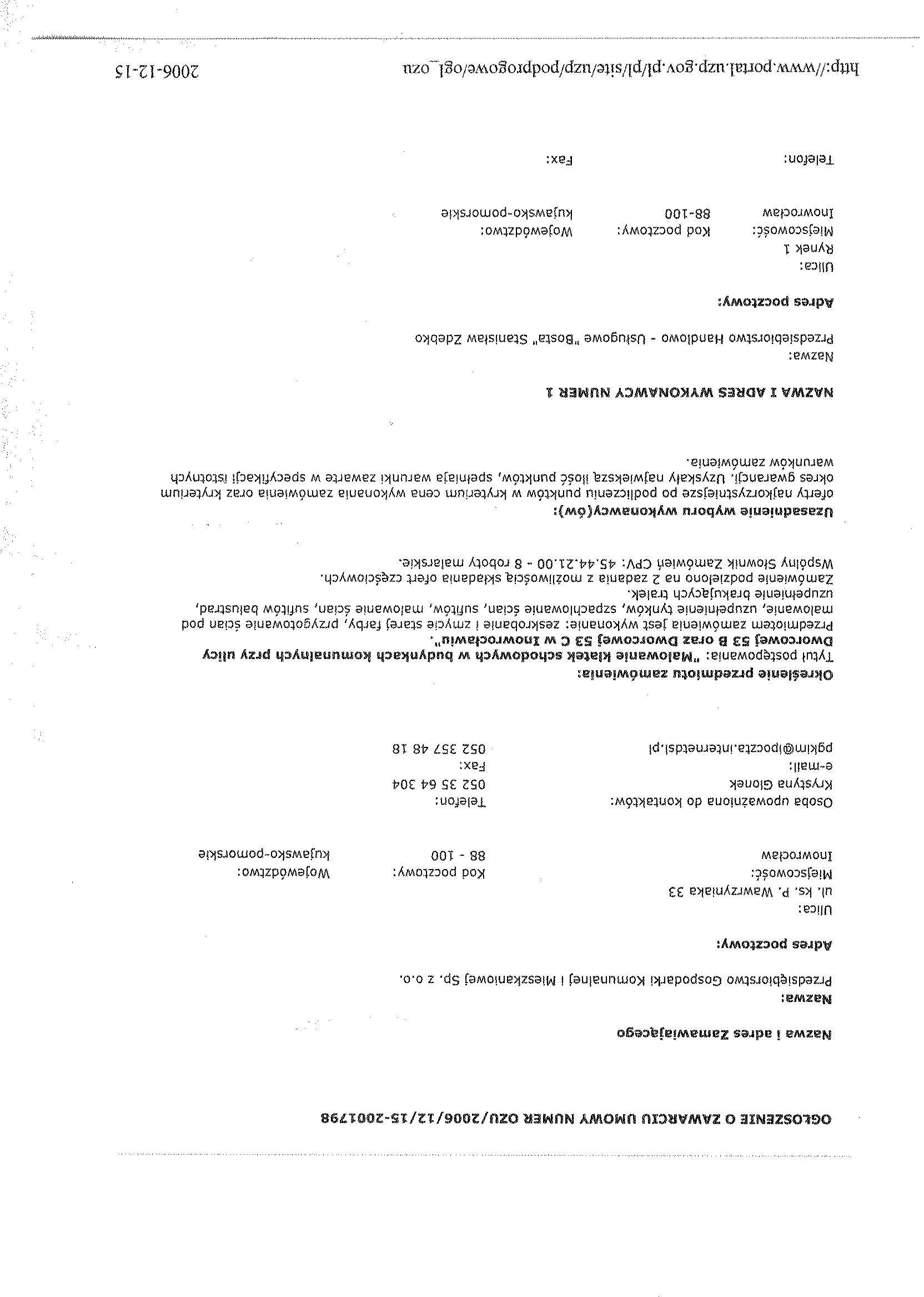 Oferty nale偶y z艂o偶y膰聽w sekretariacie Przedsi臋biorstwa Gospodarki Komunalnej i Mieszkaniowej Sp. z o.o., ul. ks. Piotra Wawrzyniaka 33, 88-100 Inowroc艂aw,聽 do dnia 6 grudnia 2006 r. do godz. 9.30.
