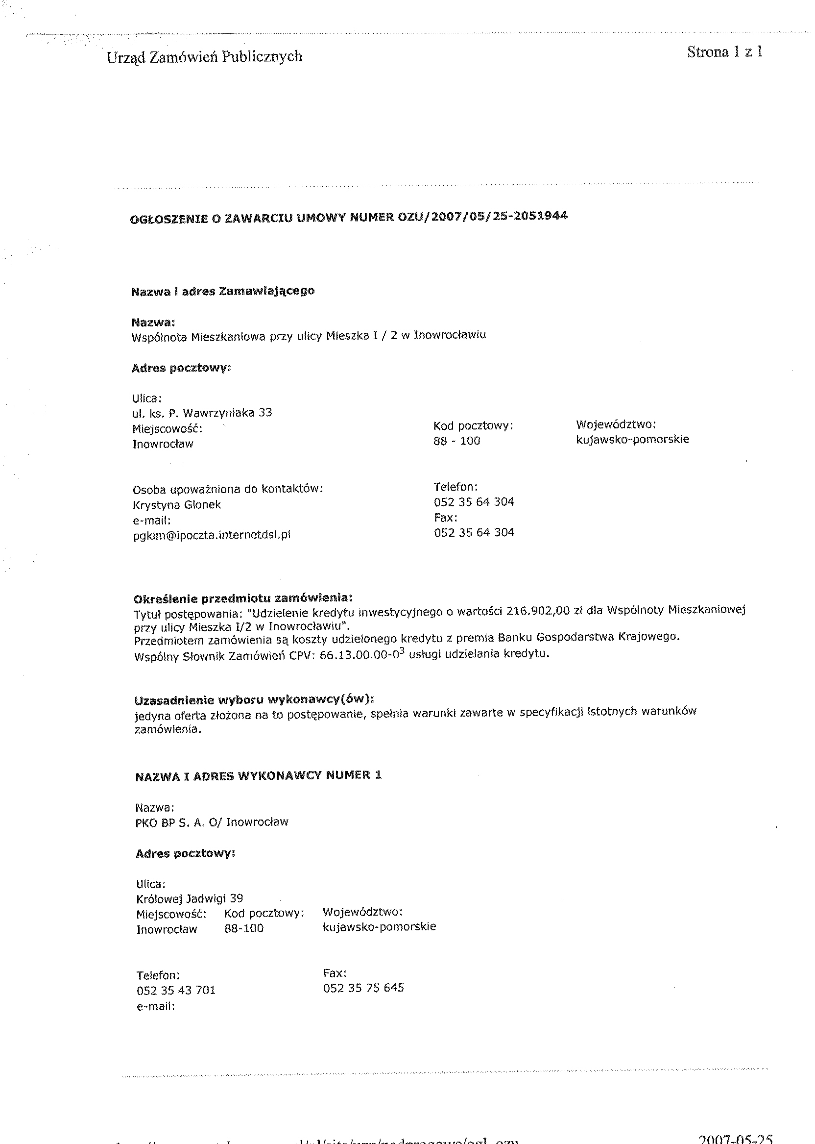 1.聽聽聽聽聽 Zamawiaj膮cy: Wsp贸lnota Mieszkaniowa przy ulicy Mieszka I / 2 w Inowroc艂awiu, w imieniu i na rzecz kt贸rej dzia艂a na mocy umowy o administrowanie, Przedsi臋biorstwo Gospodarki Komunalnej i Mieszkaniowej Sp贸艂ka z o.o.
