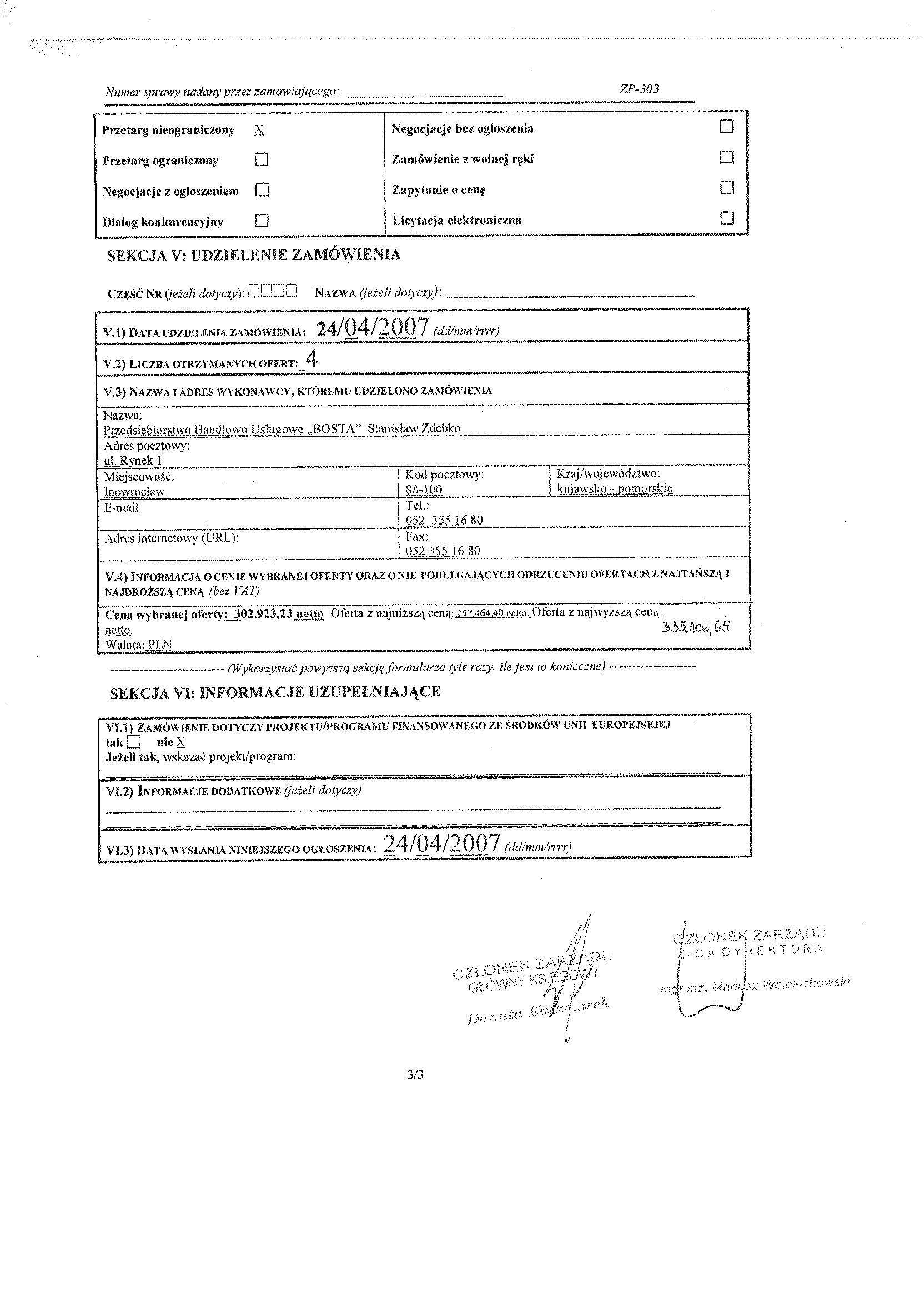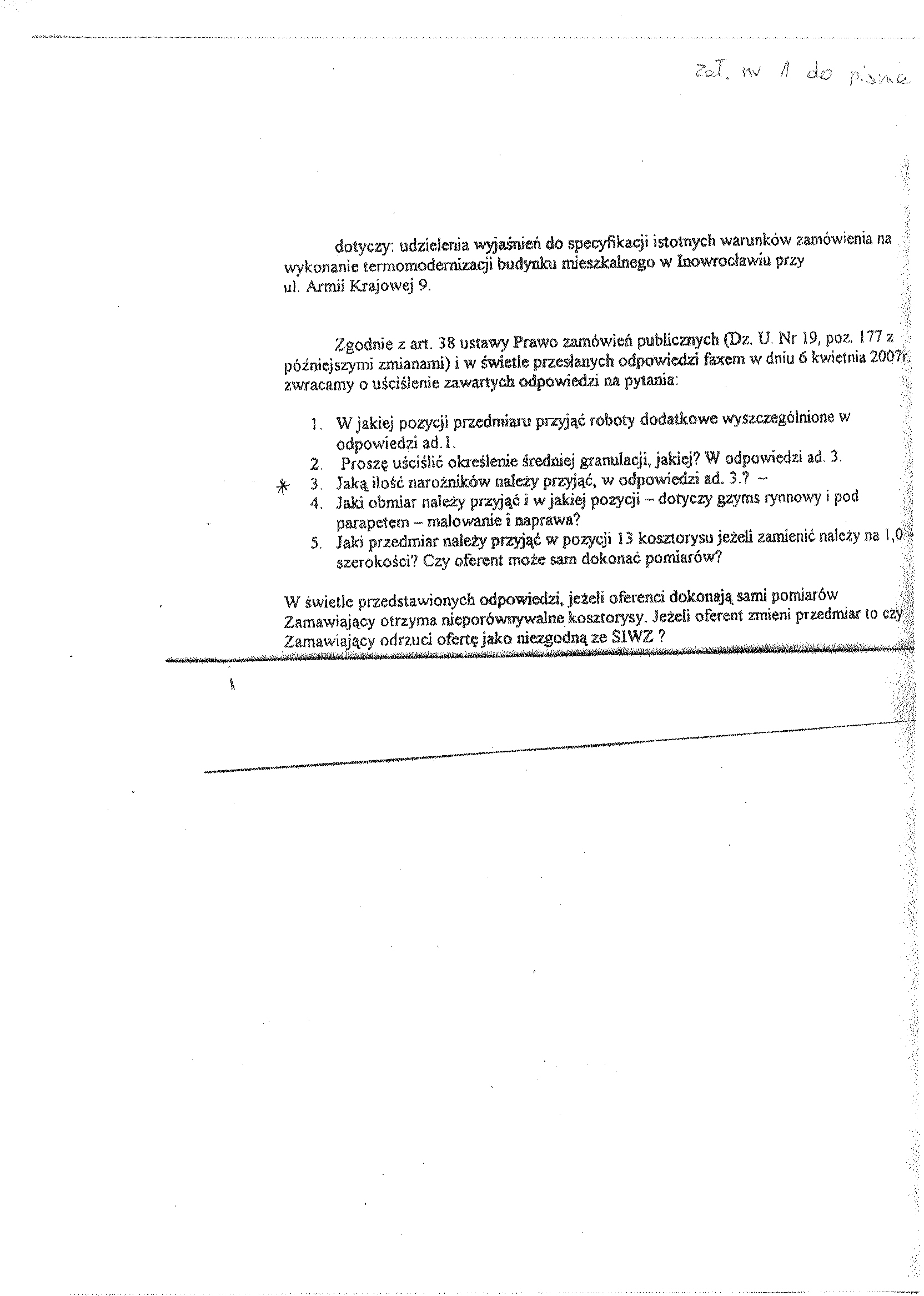 | Typ | Rozmiar | Pobierz | Komentarz | Data dodania | Licznik | .DOC | 177.5 KB | POBIERZ | og艂oszenie o zam贸wieniu | 2007-03-06 08:40:29 | 481 | .DOC | 241 KB | POBIERZ | specyfikacja istotnych warunk贸w zam贸wienia. | 2007-03-06 08:40:47 | 522 | .DOC | 86 KB | POBIERZ | za艂. nr 7 do siwz -STWiOR | 2007-03-06 08:41:19 | 475 | .DOC | 147 KB | POBIERZ | za艂. nr 7 do siwz -STWiOR | 2007-03-06 08:41:42 | 494 | ? | 7.8 KB | POBIERZ | za艂. nr 8 do siwz- przedmiary | 2007-03-06 08:42:06 | 478 | graf. | 2302.2 KB | POBIERZ | za艂. nr 9 do siwz- PB s. 1 | 2007-03-06 08:55:46 | 487 | graf. | 2819.3 KB | POBIERZ | za艂. nr 9 do siwz- PB s. 2 | 2007-03-06 08:58:54 | 424 | graf. | 2865.5 KB | POBIERZ | za艂. nr 9 do siwz- PB s. 3 | 2007-03-06 09:01:39 | 451 | graf. | 2769.3 KB | POBIERZ | za艂. nr 9 do siwz- PB s. 4 | 2007-03-06 09:04:04 | 456 | graf. | 3127.7 KB | POBIERZ | za艂. nr 9 do siwz- PB s. 5 | 2007-03-06 09:06:43 | 453 | .DOC | 26.5 KB | POBIERZ | Modyfikacja specyfikacji istotnych warunk贸w zam贸wienia. | 2007-03-16 14:36:47 | 444 | graf. | 340.2 KB | POBIERZ | tre艣膰 pyta艅 | 2007-03-16 14:37:12 | 460 | .DOC | 26 KB | POBIERZ | Modyfikacja specyfikacji istotnych warunk贸w zam贸wienia. | 2007-04-06 13:54:50 | 458 | graf. | 760.7 KB | POBIERZ | tre艣膰 pyta艅 2 | 2007-04-06 13:55:18 | 487 | .DOC | 26.5 KB | POBIERZ | zmiana terminu skladania ofert | 2007-04-10 11:34:24 | 480 | graf. | 596.2 KB | POBIERZ | tre艣膰 pyta艅 3 | 2007-04-10 11:35:33 | 470 | graf. | 800 KB | POBIERZ | Og艂oszenie o udzieleniu zam贸wienia | 2007-04-24 14:24:03 | 444 | graf. | 865.1 KB | POBIERZ | Og艂oszenie o udzieleniu zam贸wienia | 2007-04-24 14:24:43 | 453 | graf. | 810.8 KB | POBIERZ | Og艂oszenie o udzieleniu zam贸wienia | 2007-04-24 14:25:14 | 454 |