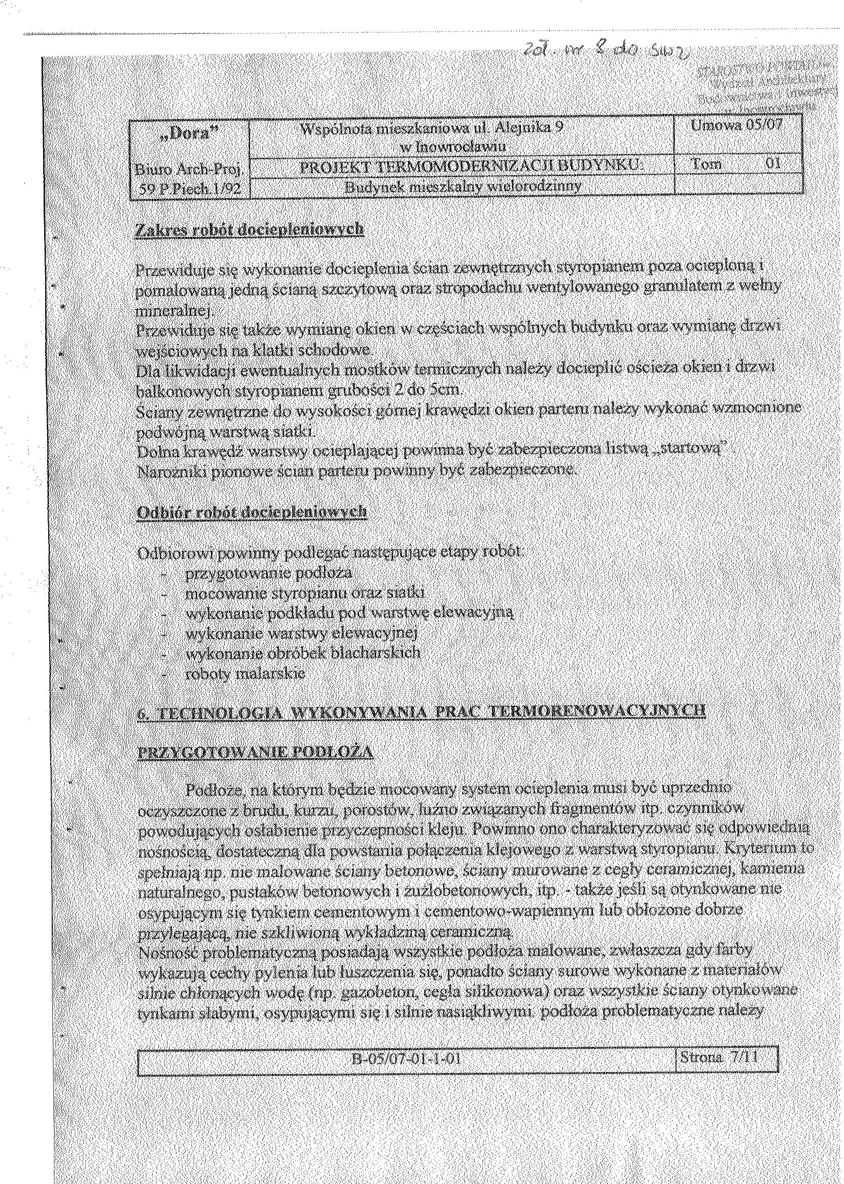 II.1.1) Nazwa nadana zam贸wieniu przez zamawiaj膮cego „Docieplenie 艣cian zewn臋trznych wraz z kolorystyk膮 elewacji budynku mieszkalnego przy ulicy Alejnika 9 w Inowroc艂awiu”. |