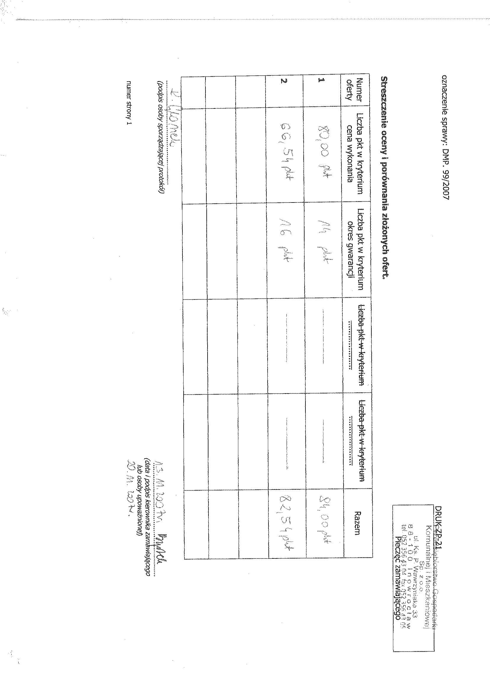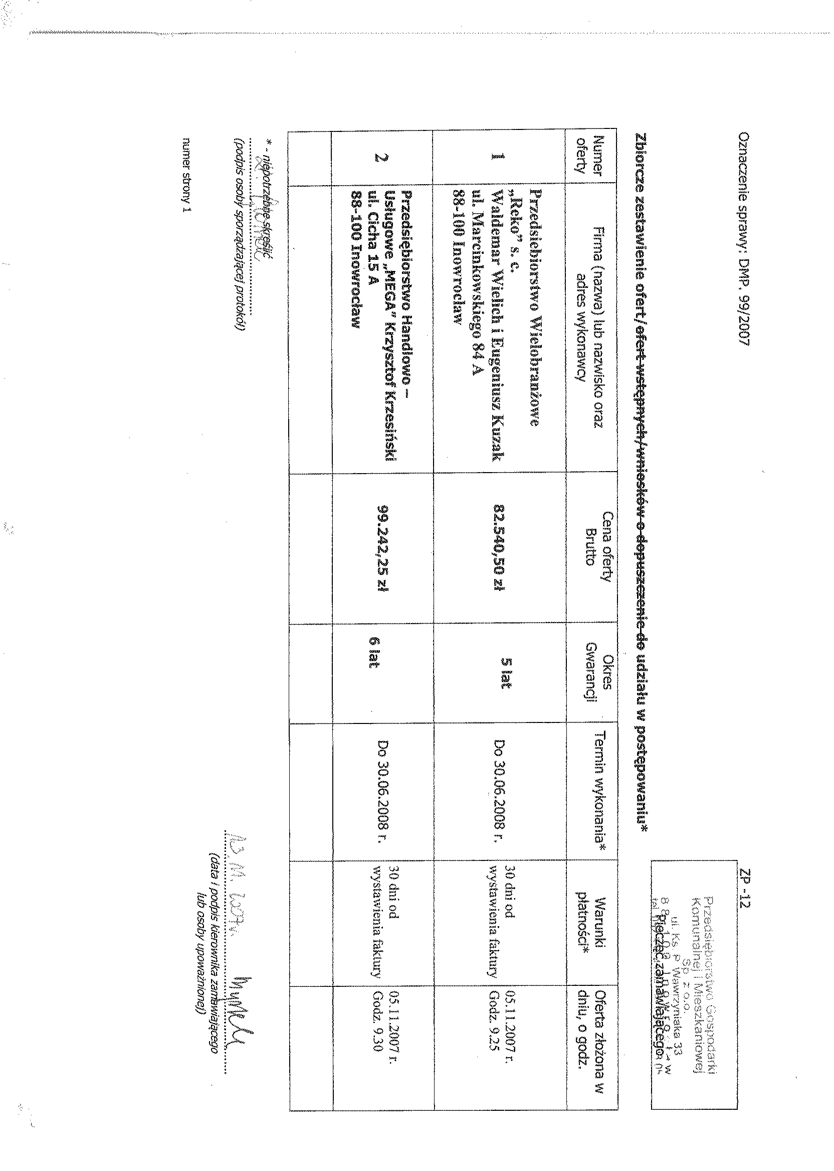 Numer sprawy: DMP. 99/2007聽聽聽聽聽聽聽聽聽聽聽聽聽聽聽聽聽聽聽聽聽聽聽聽聽聽聽Inowroc艂aw, dnia 12 pa藕dziernika 2007 r.聽聽 聽