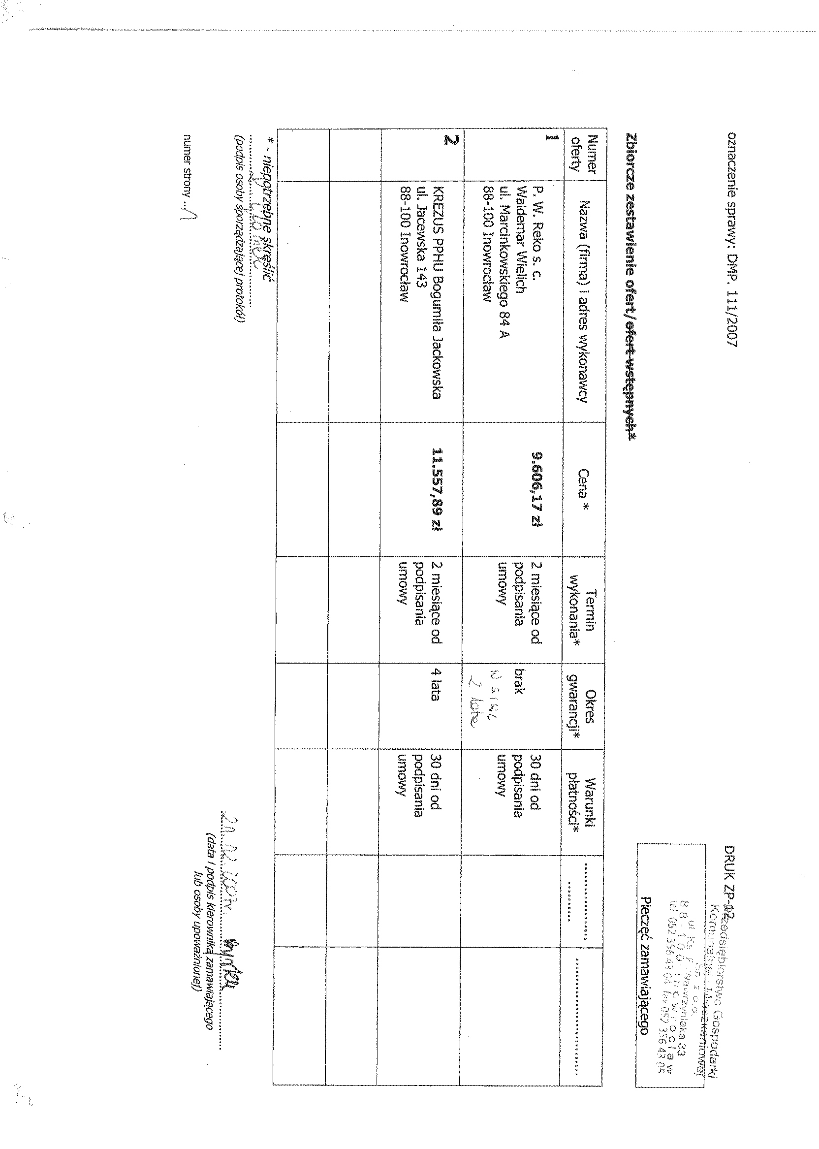 Numer sprawy: DMP. 111/2007聽聽聽聽聽聽聽聽聽聽聽聽聽聽聽聽聽聽聽聽聽聽聽聽聽聽聽聽聽Inowroc艂aw, dnia 26 listopada 2007 r.聽聽 聽