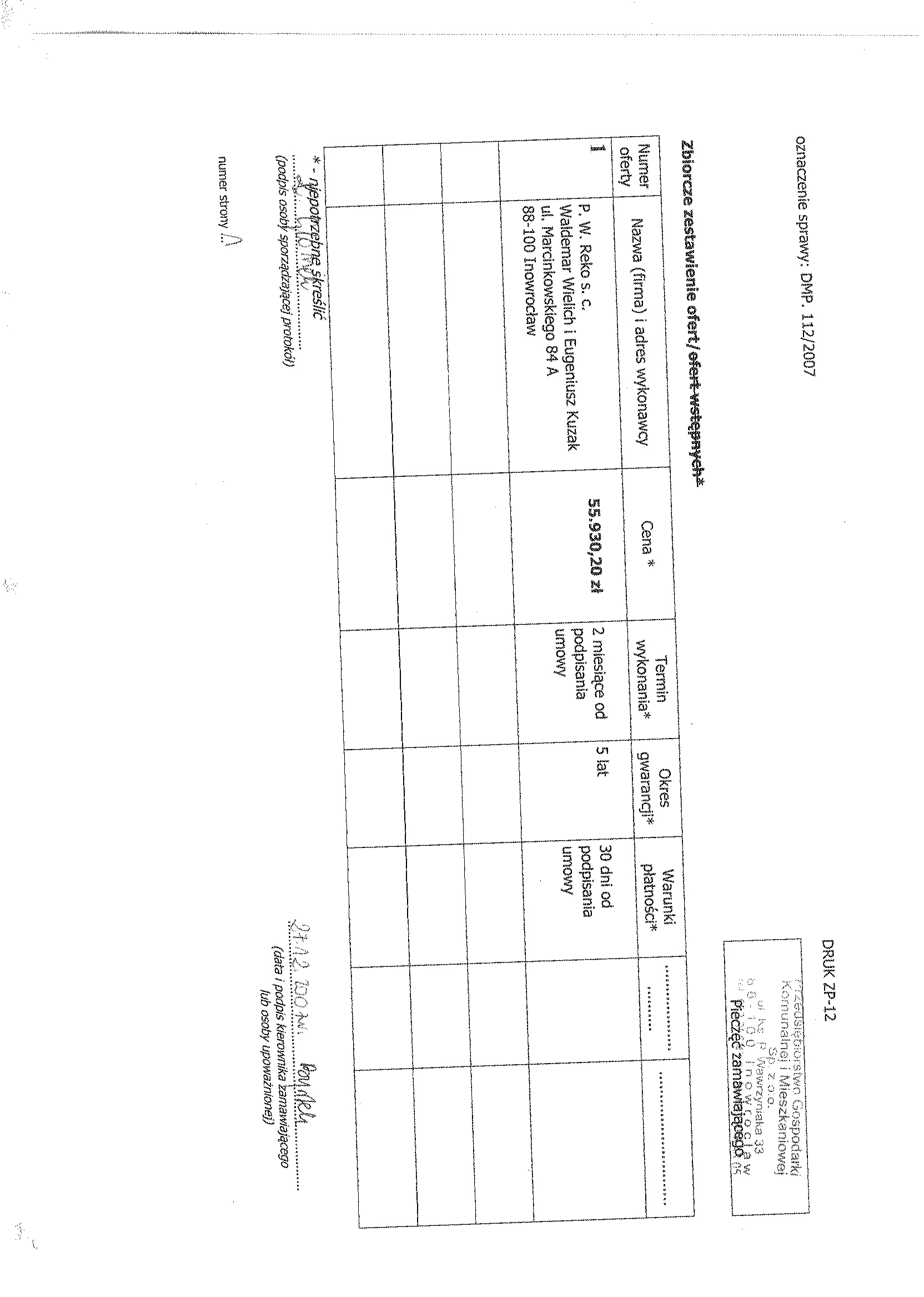 Numer sprawy: DMP. 112/2007聽聽聽聽聽聽聽聽聽聽聽聽聽聽聽聽聽聽聽聽聽聽聽聽聽聽聽聽聽聽聽聽聽聽聽聽Inowroc艂aw, dnia 3 grudnia 2007 r.聽聽 聽