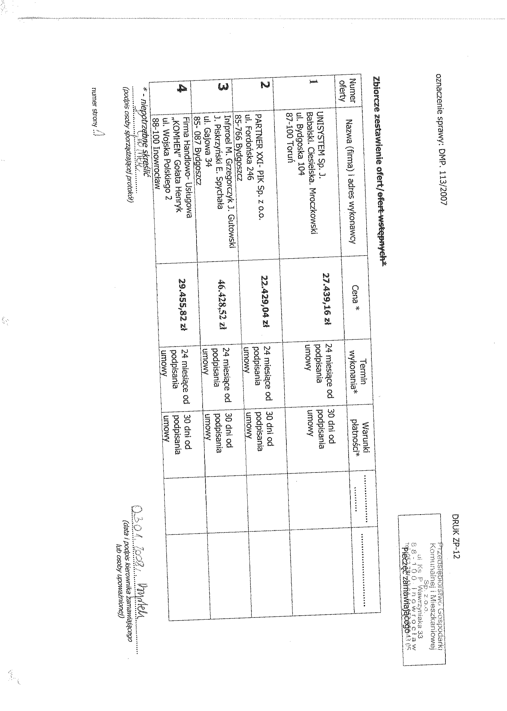 Numer sprawy: DMP. 113/2007聽聽聽聽聽聽聽聽聽聽聽聽聽聽聽聽聽聽聽聽聽聽聽聽聽聽聽聽聽聽聽聽Inowroc艂aw, dnia 5 grudnia 2007 r.聽聽 聽