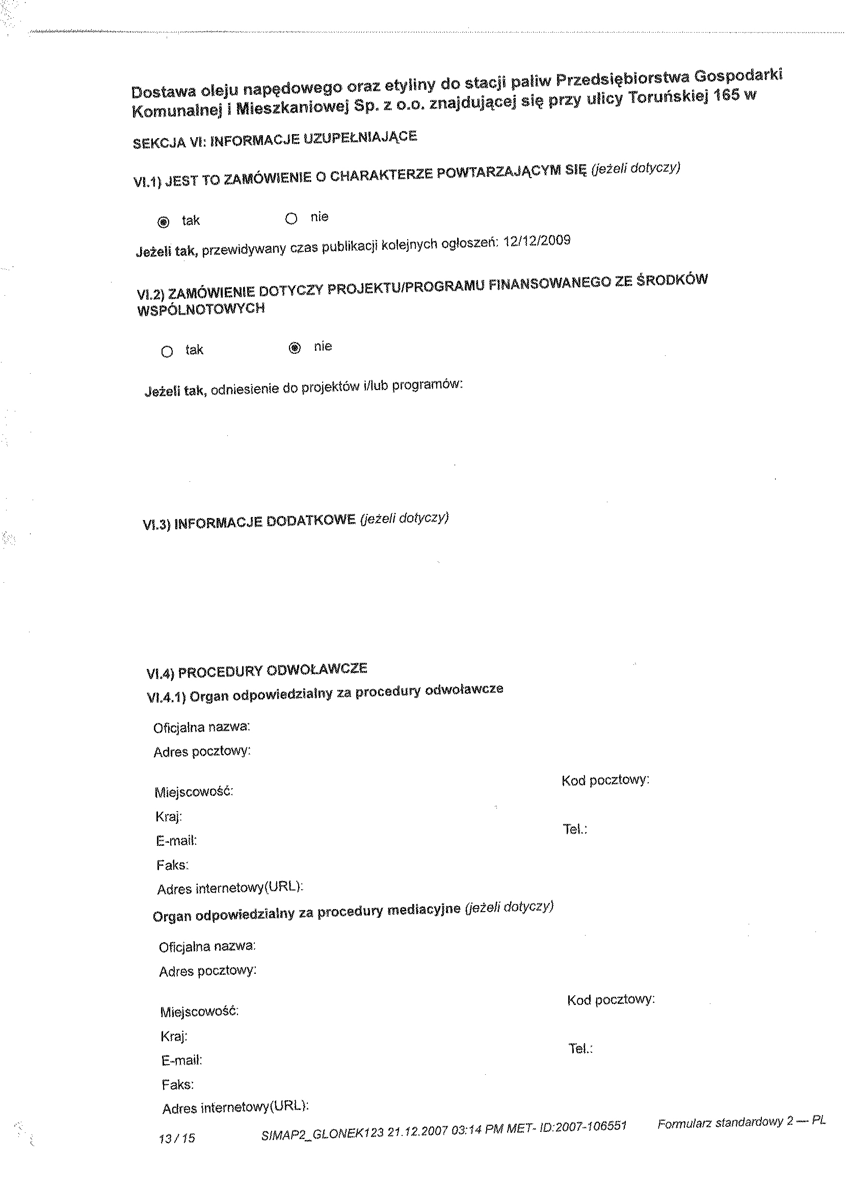 | Typ | Rozmiar | Pobierz | Komentarz | Data dodania | Licznik | .DOC | 198 KB | POBIERZ | Specyfikacja istotnych warunków zamówienia. | 2007-12-24 08:20:08 | 435 | graf. | 688.7 KB | POBIERZ | UE- s.1 | 2007-12-24 11:45:32 | 438 | graf. | 471.4 KB | POBIERZ | UE- s.2 | 2007-12-24 11:45:51 | 431 | graf. | 816 KB | POBIERZ | UE-s.3 | 2007-12-24 11:47:26 | 413 | graf. | 738.2 KB | POBIERZ | UE-s.5 | 2007-12-24 11:48:07 | 357 | graf. | 257.9 KB | POBIERZ | UE-s.4 | 2007-12-24 11:48:30 | 416 | graf. | 1349.6 KB | POBIERZ | UE-s.6 | 2007-12-24 11:49:04 | 415 | graf. | 443.4 KB | POBIERZ | UE-s.7 | 2007-12-24 11:49:22 | 416 | graf. | 251.2 KB | POBIERZ | UE-s.8 | 2007-12-24 11:49:37 | 407 | graf. | 333.3 KB | POBIERZ | UE-s.9 | 2007-12-24 11:49:52 | 359 | graf. | 801.9 KB | POBIERZ | UE-s.10 | 2007-12-24 11:50:16 | 411 | graf. | 178.8 KB | POBIERZ | UE-s.11 | 2007-12-24 11:50:28 | 429 | graf. | 447.3 KB | POBIERZ | UE-s.12 | 2007-12-24 11:50:45 | 365 | graf. | 469.1 KB | POBIERZ | UE-s.13 | 2007-12-24 11:51:04 | 386 | graf. | 227.4 KB | POBIERZ | UE-s.14 | 2007-12-24 11:51:21 | 411 | graf. | 271.1 KB | POBIERZ | UE-s.15 | 2007-12-24 11:51:37 | 361 | graf. | 760.3 KB | POBIERZ | Zawiadomienie o wyniku postępowania. | 2008-02-11 14:54:34 | 418 | graf. | 671.3 KB | POBIERZ | Zbiorcze zestawienie ofert. | 2008-02-11 14:56:03 | 392 | graf. | 479.4 KB | POBIERZ | Streszczenie oceny i porównanie złożonych ofert | 2008-02-11 14:57:22 | 369 |