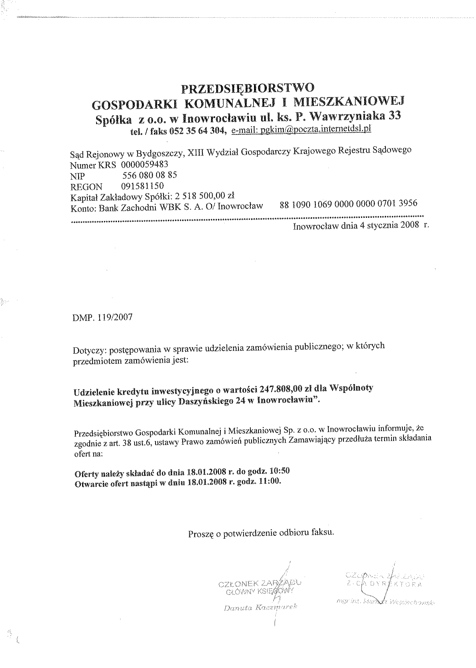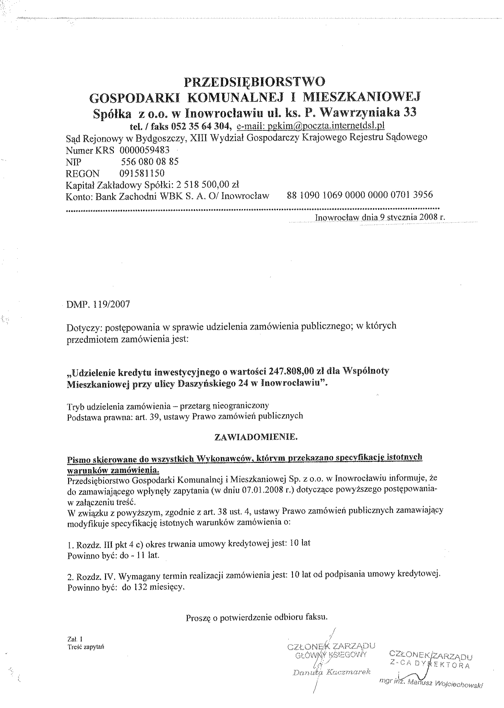 Znak sprawy: DMP. 119/2007聽聽聽聽聽聽聽聽聽聽聽聽聽聽聽聽聽聽聽聽聽聽聽聽聽聽聽聽聽聽Inowroc艂aw, dnia 31 grudnia 聽2007 r.聽聽聽 聽 聽 Og艂oszenie o wszcz臋ciu post臋powania