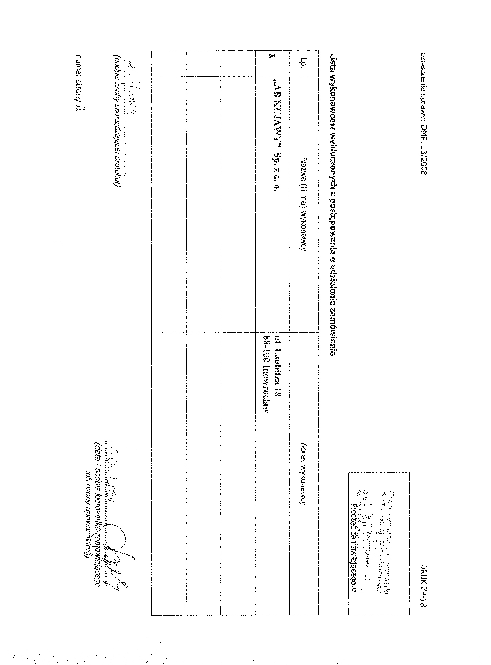 Numer sprawy: DMP. 13/2008聽聽聽聽聽聽聽聽聽聽聽聽聽聽聽聽聽聽聽聽聽聽聽聽聽聽聽聽聽聽聽聽聽聽聽聽聽聽聽聽聽Inowroc艂aw, dnia 18 marca 2008 r.聽聽 聽