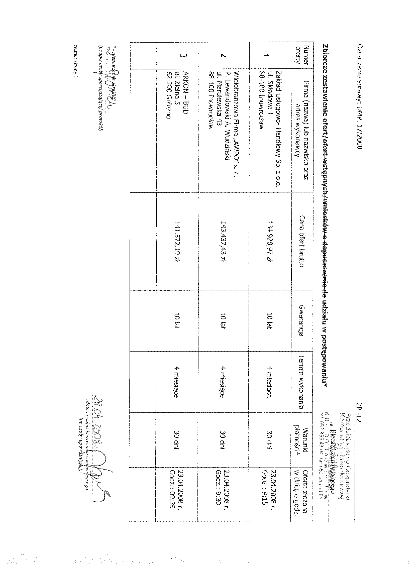 Numer sprawy: DMP. 17/2008聽聽聽聽聽聽聽聽聽聽聽聽聽聽聽聽聽聽聽聽聽聽聽聽聽聽聽聽聽聽聽聽聽聽聽聽聽聽聽聽Inowroc艂aw, dnia 28 marca 2008 r.聽聽 聽
