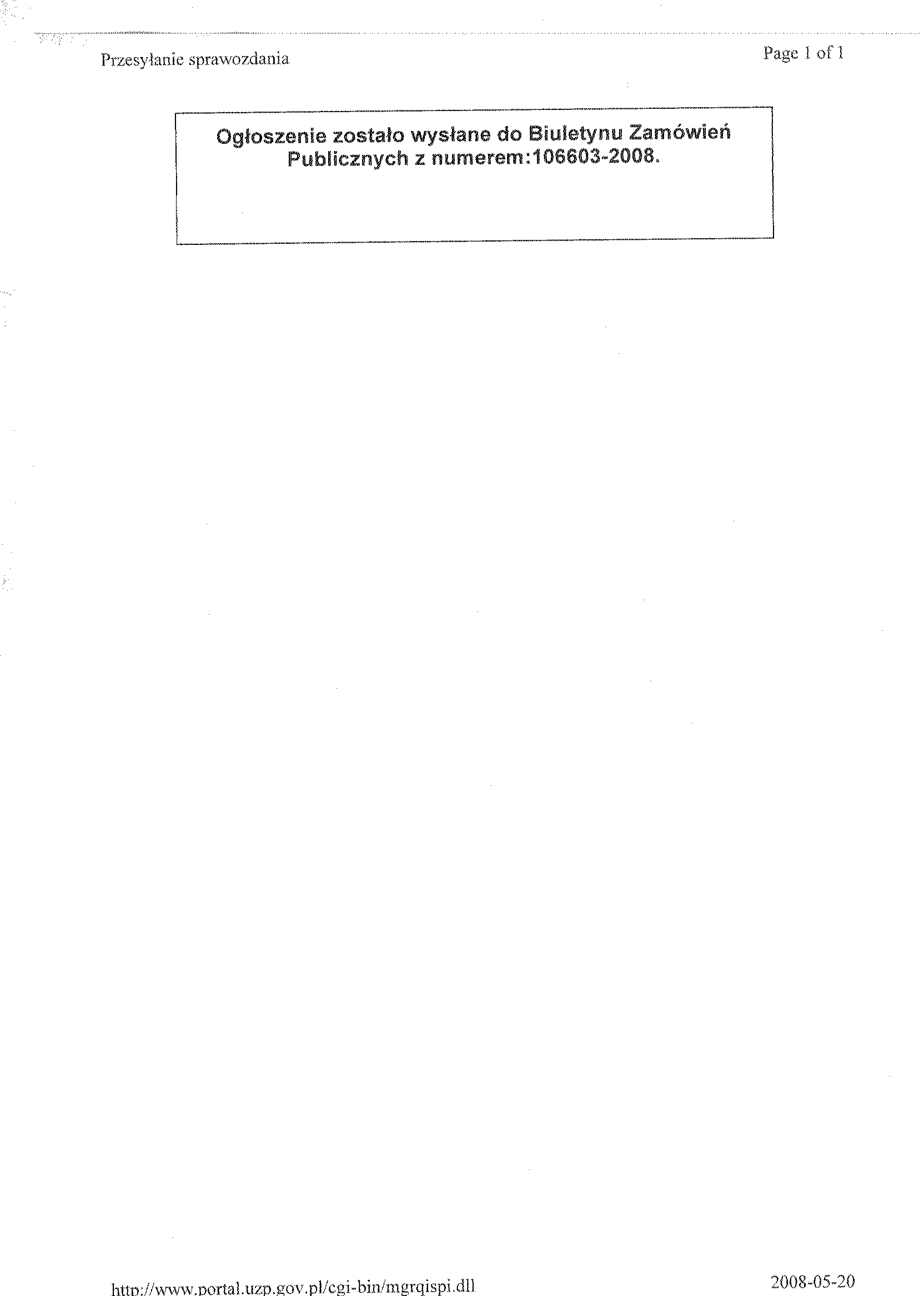 Tryb post臋powania: przetarg nieograniczony Rodzaj zam贸wienia: dostawa Post臋powanie og艂oszono na stronie BZP w dniu 18/04/2008 r., pod numerem: 78891 - 2008 聽
