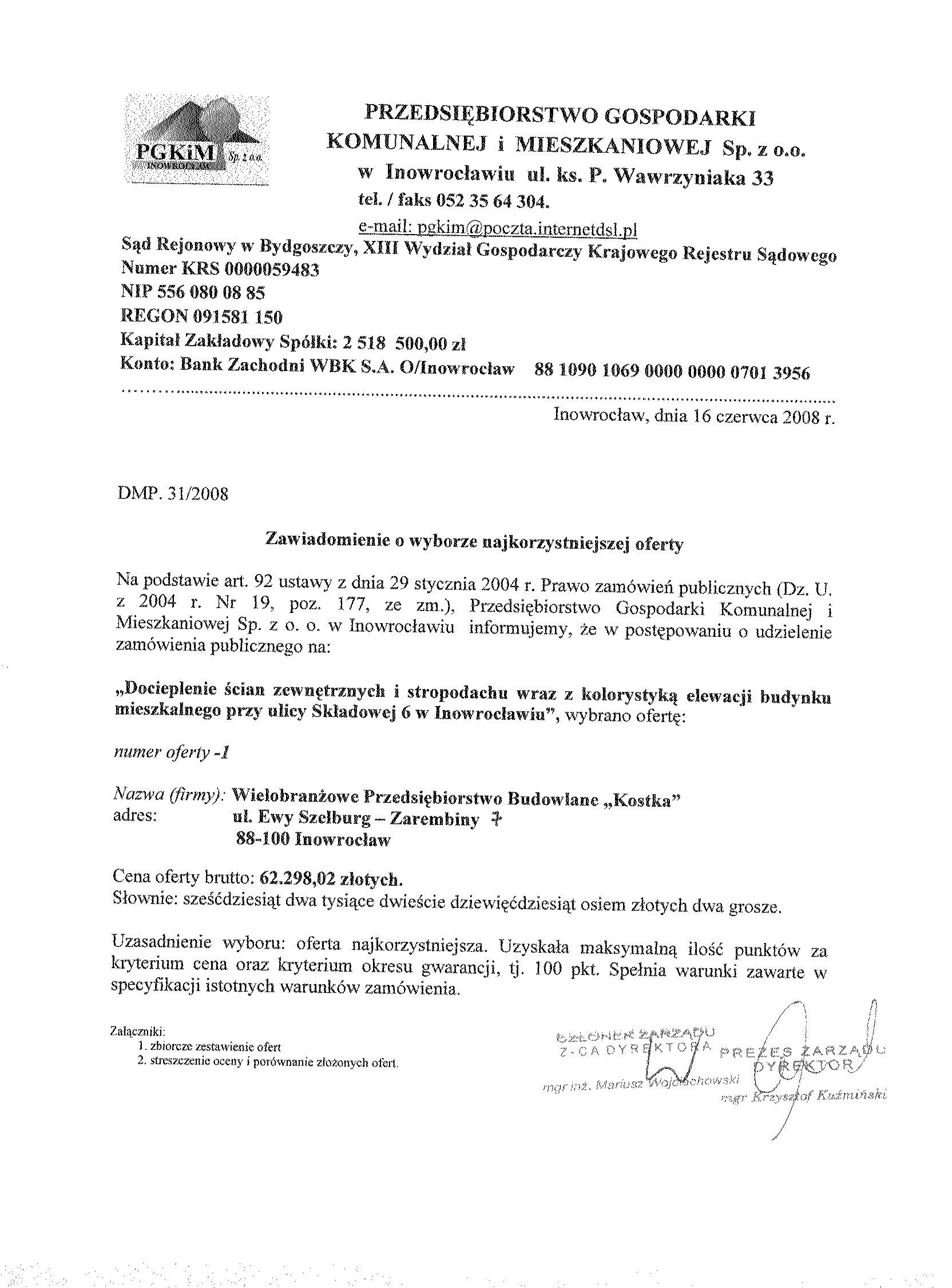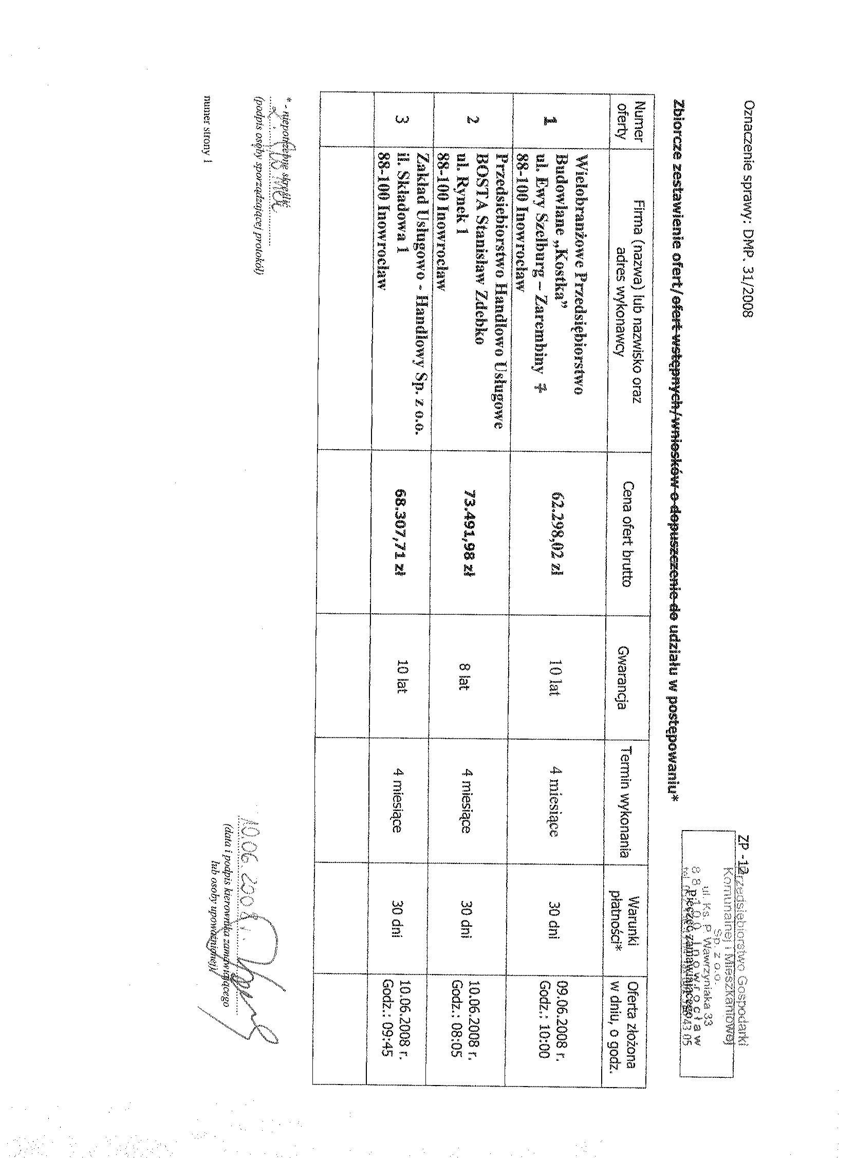 Numer sprawy: DMP. 31/2008聽聽聽聽聽聽聽聽聽聽聽聽聽聽聽聽聽聽聽聽聽聽聽聽聽聽聽聽聽聽聽聽聽聽聽聽聽聽聽聽聽聽Inowroc艂aw, dnia 19 maja 2008 聽r.聽聽