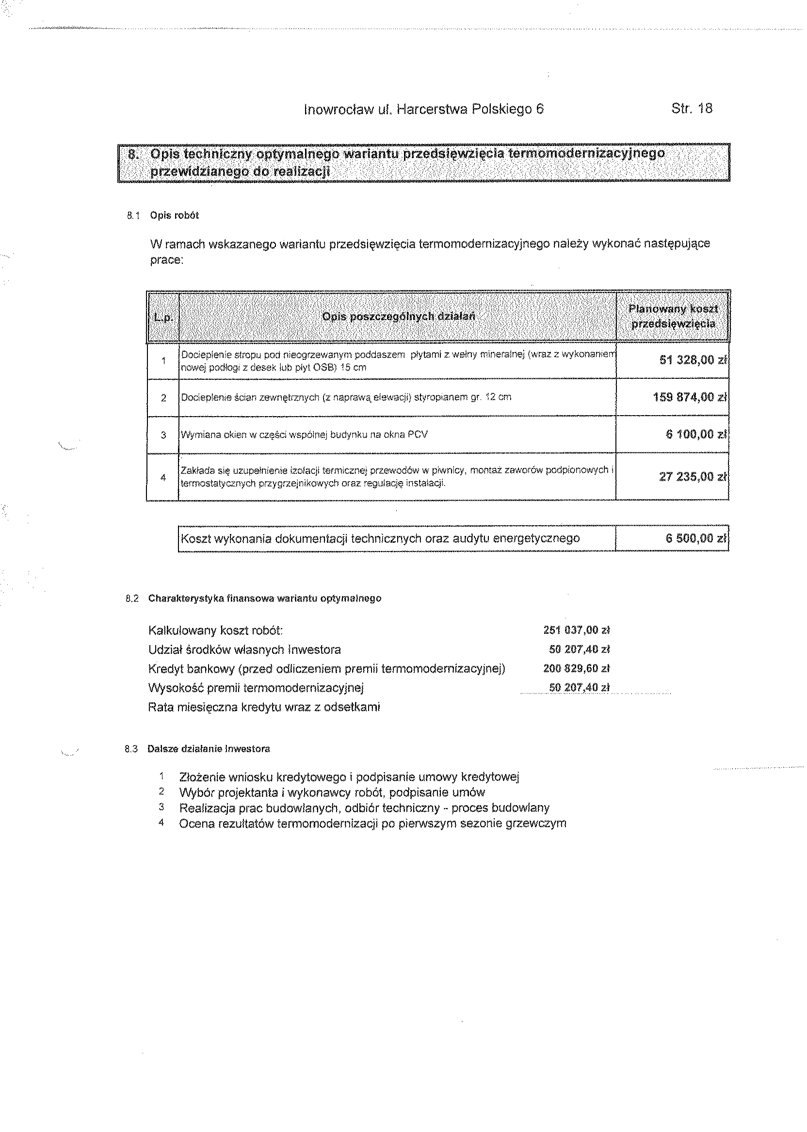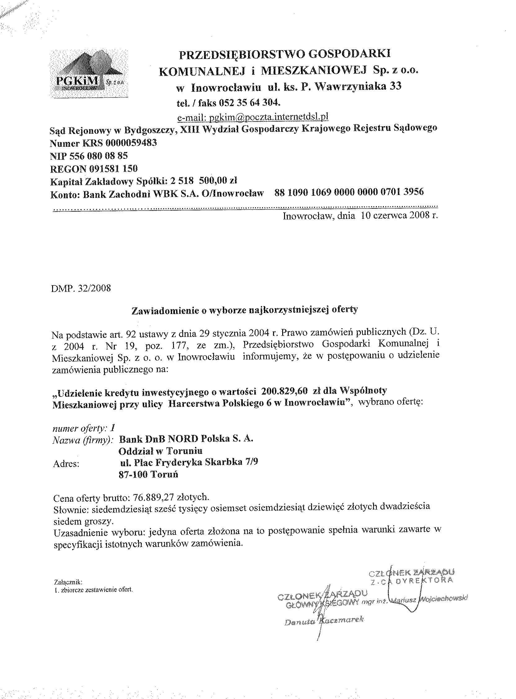 "Udzielenie kredytu inwestycyjnego o warto艣ci聽 200.829,60 z艂 dla Wsp贸lnoty Mieszkaniowej przy ulicy Harcerstwa Polskiego 6 聽w Inowroc艂awiu". 聽