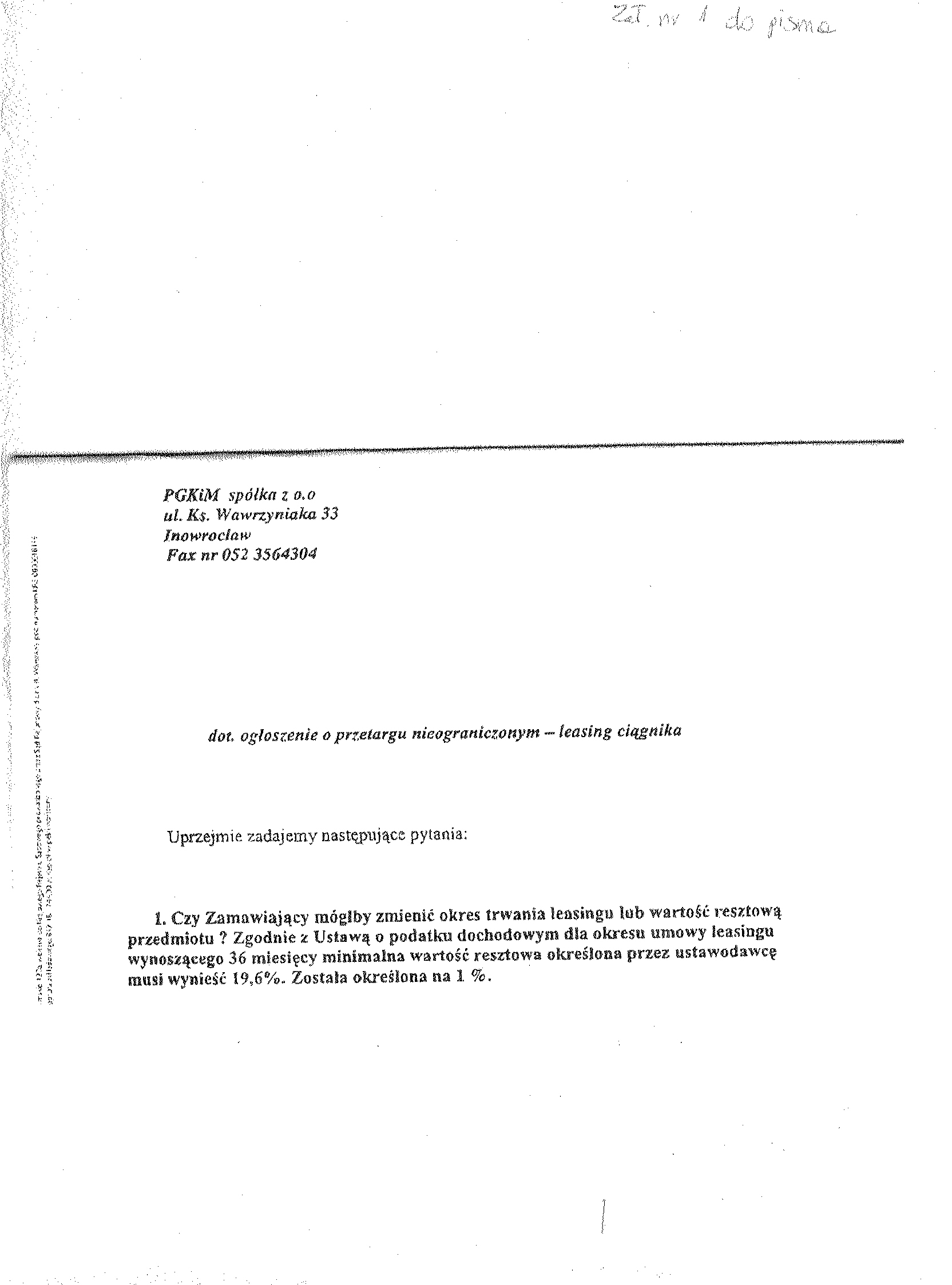 15. Kryteria oceny ofert: a) suma op艂at leasingowych聽 - 100 % 16. Zamawiaj膮cy nie wymaga wadium. 17.Miejsce i termin otwarcia ofert: Przedsi臋biorstwo Gospodarki Komunalnej i Mieszkaniowej Sp. z o.o., ul. ks. Piotra Wawrzyniaka 33, 88-100 Inowroc艂aw dnia 4 czerwca 2008 r.聽 o godz. 10.00 (salka konferencyjna). 18.Termin zwi膮zania ofert膮: 30 dni . 19. Zamawiaj膮cy nie wymaga wniesienia zabezpieczenia nale偶ytego wykonania umowy.聽聽聽聽聽聽聽聽聽聽聽聽聽聽聽聽聽聽聽聽聽聽聽聽聽聽聽聽聽聽聽聽聽聽聽聽聽聽聽聽聽聽聽聽聽聽 聽聽聽聽聽聽聽聽聽聽聽聽聽聽聽聽聽聽聽聽聽聽聽聽聽聽聽聽聽聽聽聽聽聽 聽聽 聽聽聽聽聽聽聽聽聽聽聽聽聽聽聽聽聽聽聽聽聽聽聽聽聽聽聽聽聽聽聽聽聽聽聽聽聽聽聽聽聽聽聽聽聽聽聽聽聽聽聽聽聽聽聽聽聽聽聽聽聽聽聽聽聽聽聽聽聽聽 聽
