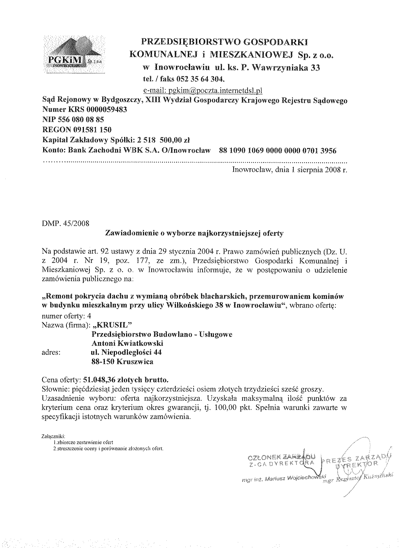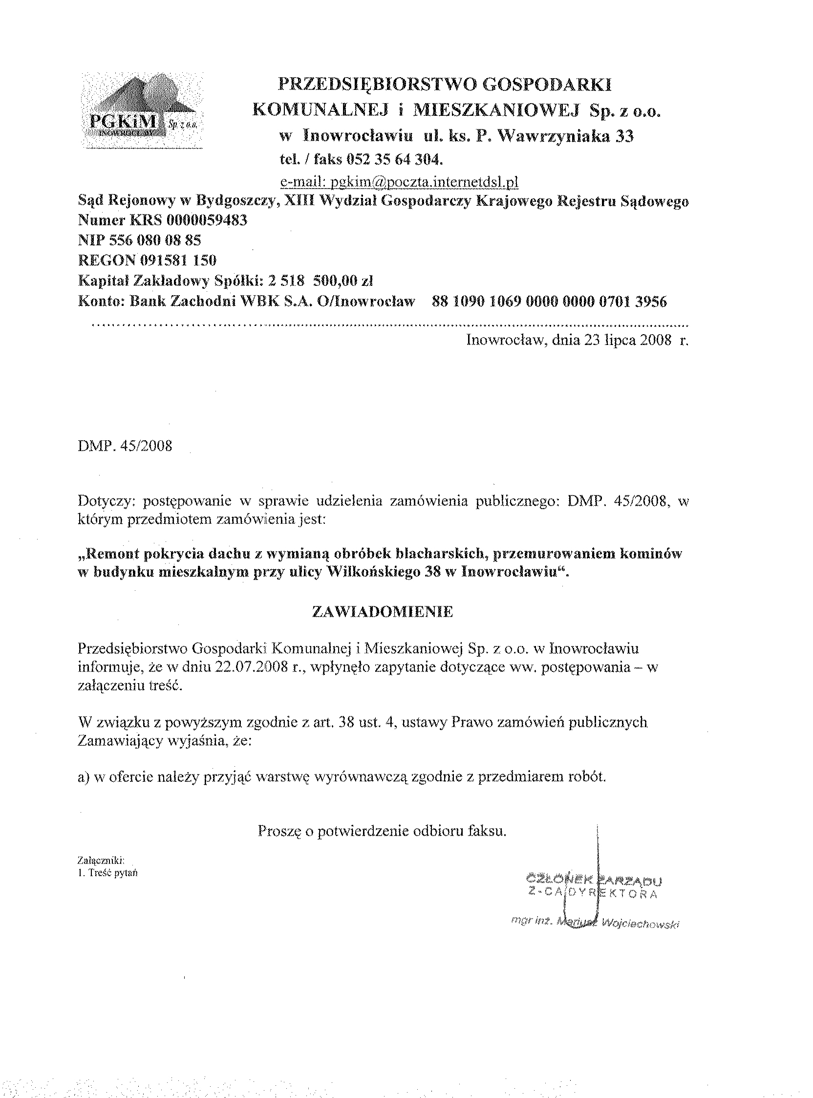 Numer sprawy: DMP.45/2008聽聽聽聽聽聽聽聽聽聽聽聽聽聽聽聽聽聽聽聽聽聽聽聽聽聽聽聽聽聽聽聽聽聽聽聽聽聽聽聽聽聽Inowroc艂aw, dnia 4 lipca 聽2008 r.聽聽 聽 聽