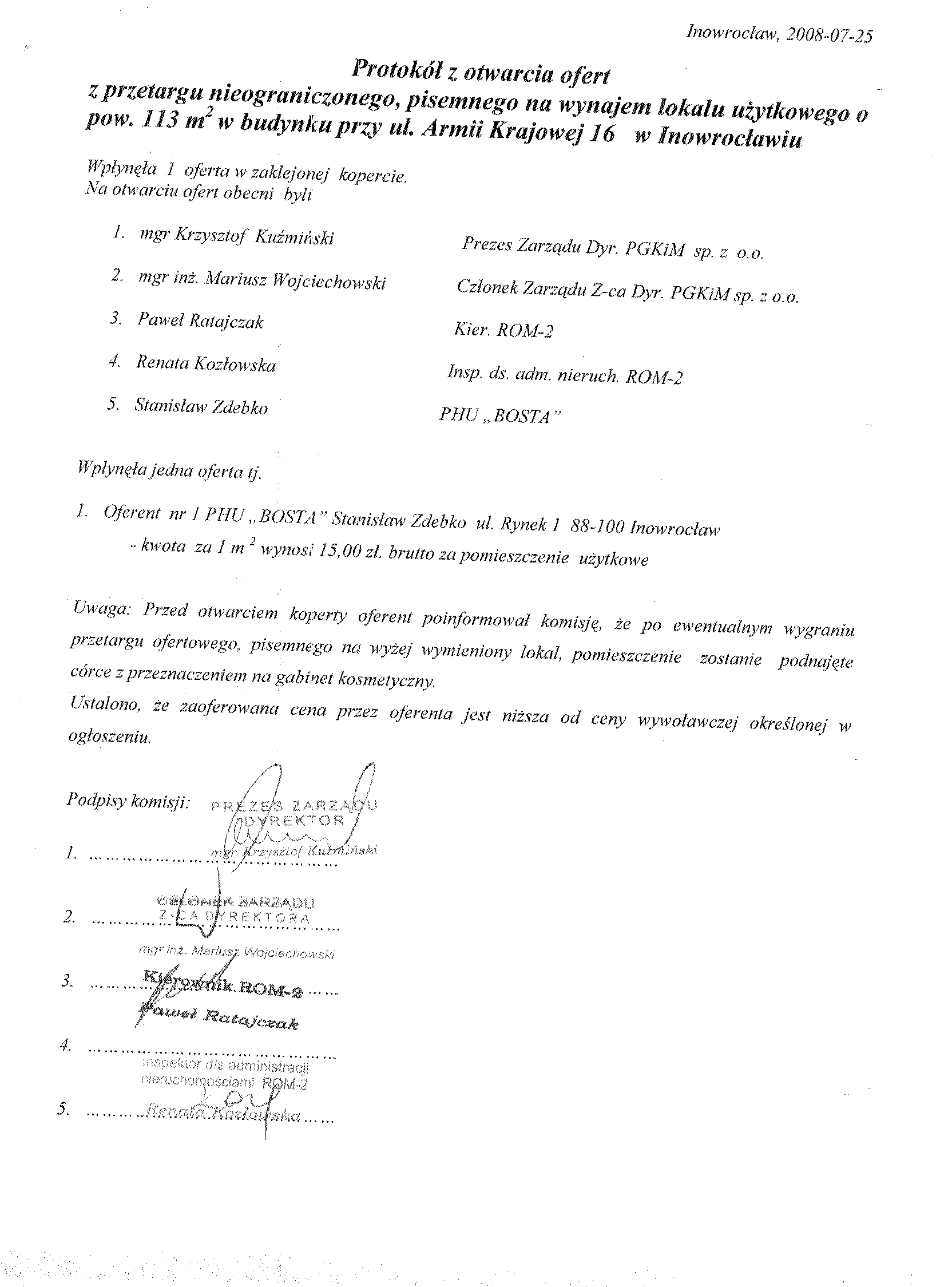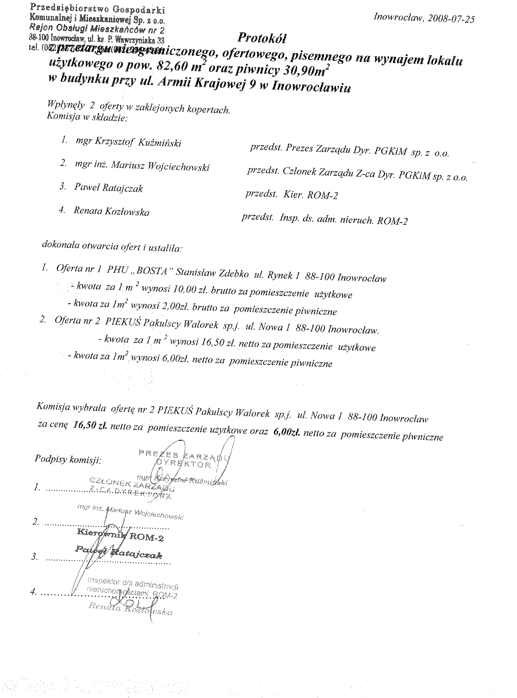 Przedsiębiorstwo Gospodarki Komunalnej i Mieszkaniowej sp. z o.o. w Inowrocławiu OGŁASZA przetarg nieograniczony ofertowy pisemny na wynajem lokali użytkowych