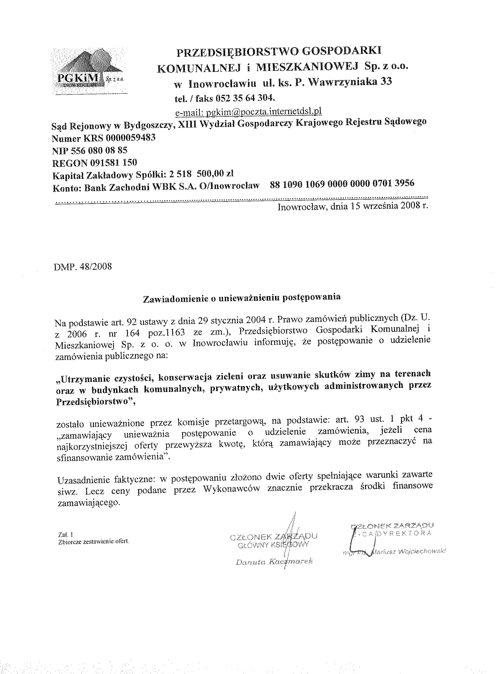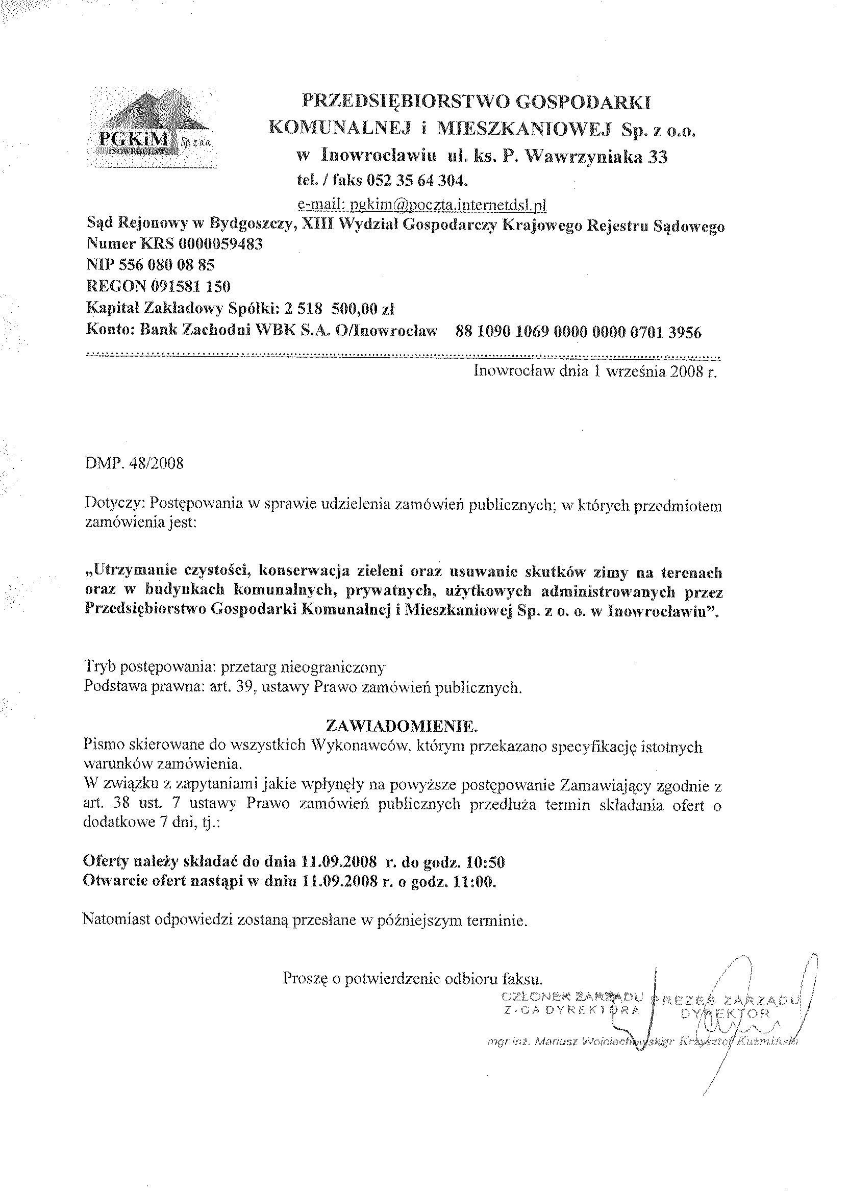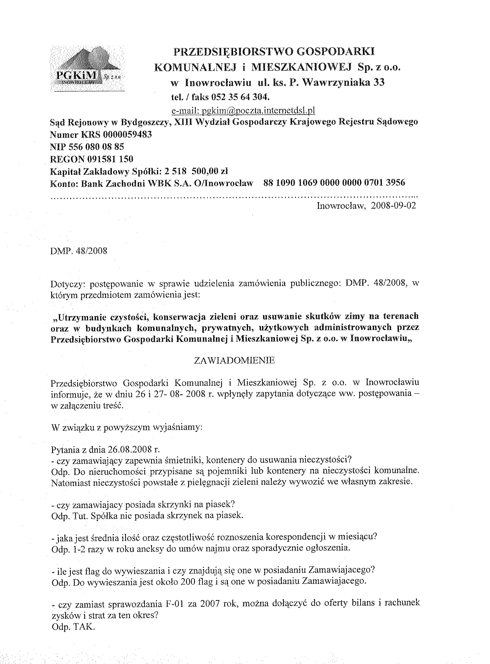 1. Zamawiaj膮cy: Przedsi臋biorstwo Gospodarki Komunalnej i Mieszkaniowej Sp. z o.o. w Inowroc艂awiu, 聽