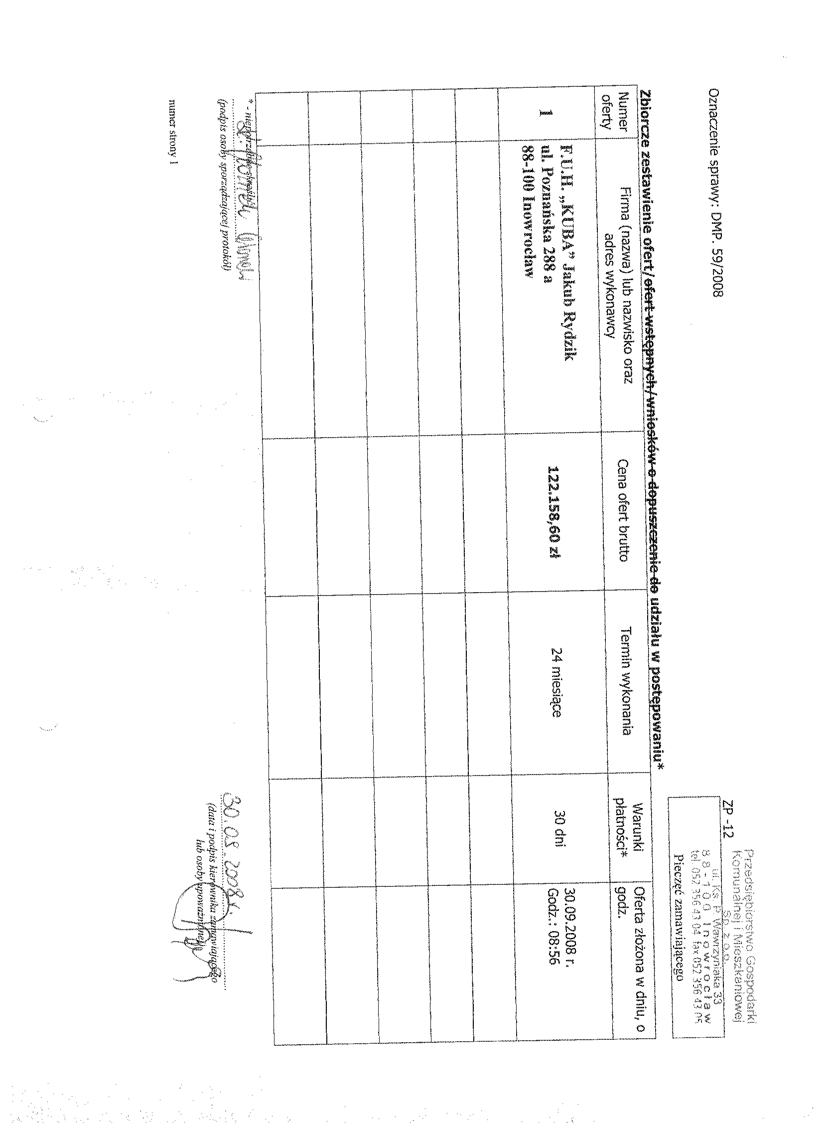 Numer sprawy: DMP.59/2008聽聽聽聽聽聽聽聽聽聽聽聽聽聽聽聽聽聽聽聽聽聽聽聽聽聽聽聽聽聽聽聽聽聽聽Inowroc艂aw, dnia 22 wrze艣nia 2008 r.聽聽 聽