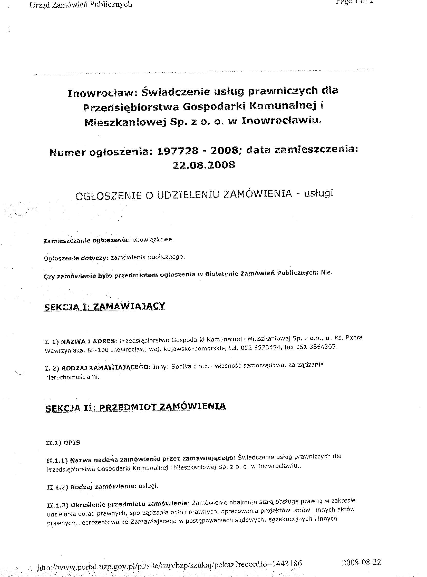 | Typ | Rozmiar | Pobierz | Komentarz | Data dodania | Licznik | graf. | 675.9 KB | POBIERZ | Ogłoszenie o udzieleniu zamówienia BZP nr 197728-2008 | 2008-10-23 09:50:11 | 329 | graf. | 541.1 KB | POBIERZ | strona 2 | 2008-10-23 09:50:43 | 366 |