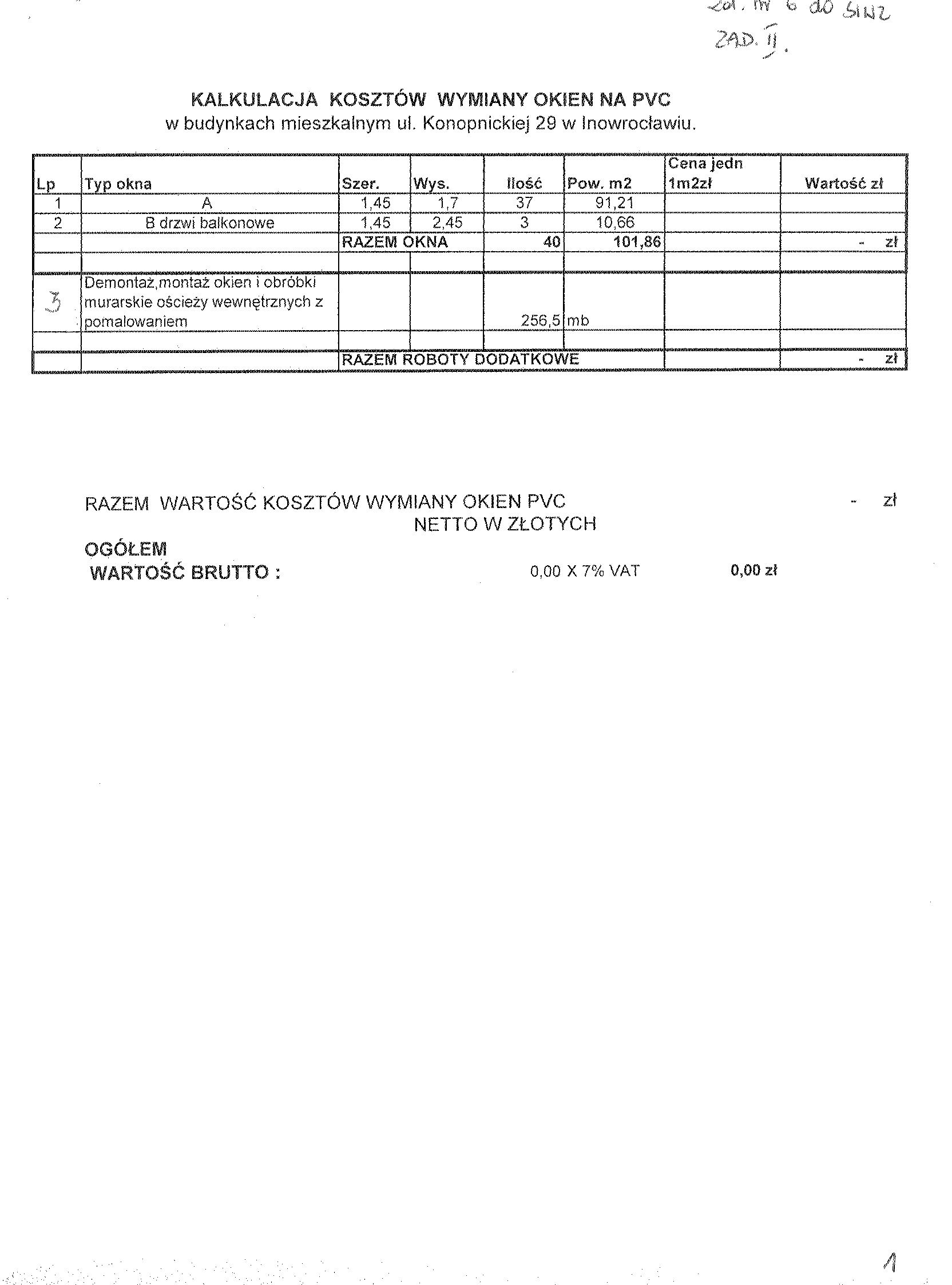 2. Nazwa nadana zam贸wieniu: "Wymiana stolarki okiennej drewnianej na PCV w mieszkaniach komunalnych".