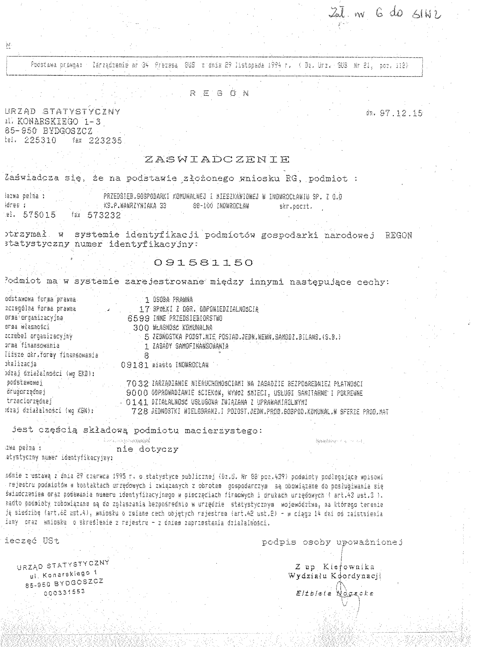 S膮d Rejonowy w Bydgoszczy, XIII Wydzia艂 Gospodarczy Krajowego Rejestru S膮dowego Numer KRS 0000059483 REGON: 091581150 NIP: 556-080-08-85 Kapita艂 Zak艂adowy Sp贸艂ki: 2聽518聽500, 00 z艂 Konto: Bank Zachodni WBK S. A.O/ Inowroc艂aw聽聽聽聽聽 88 1090 1069 0000 0000 0701 3956