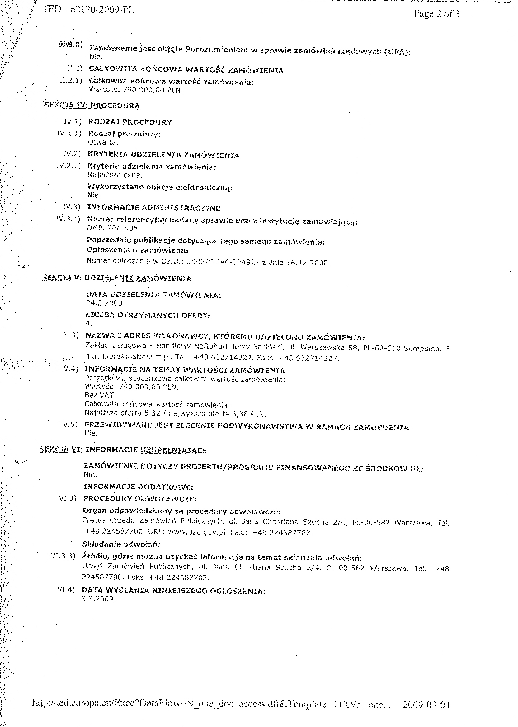 Numer og艂oszenia w BZP: 263232 - 2008; data zamieszczenia 17/12//2008 Na stronie internetowej: 17/12/2008