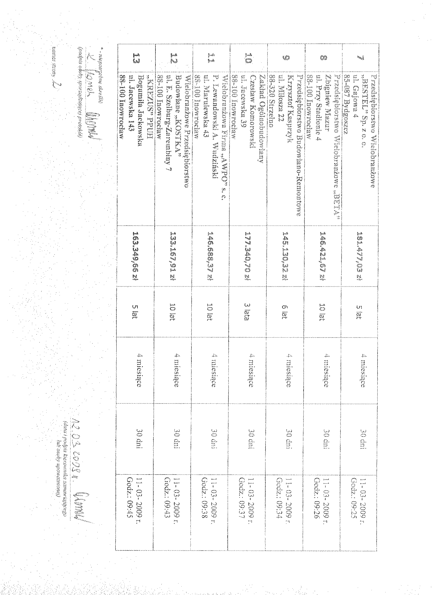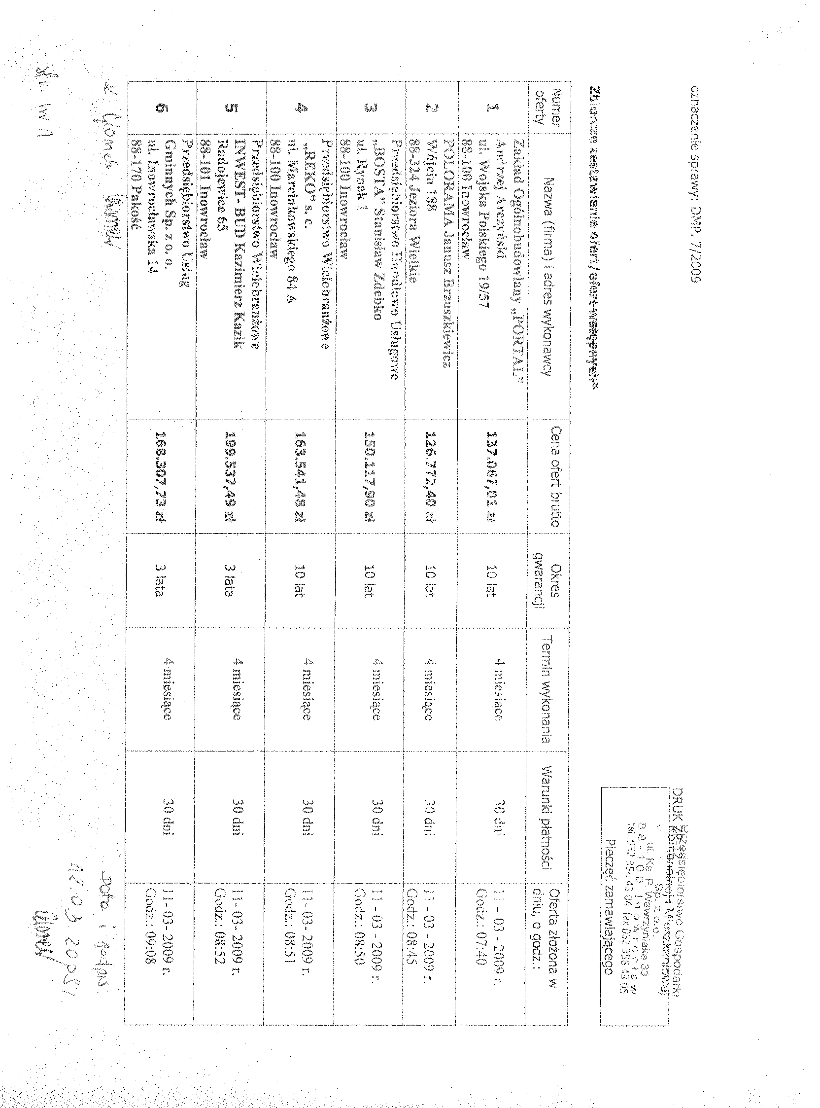 16.Miejsce i termin otwarcia ofert: Przedsi臋biorstwo Gospodarki Komunalnej i Mieszkaniowej Sp. z o.o., ul. ks. Piotra Wawrzyniaka 33, 88-100 Inowroc艂aw, dnia 11 marca 2009 r. o godzinie 10:00 聽 17. Termin zwi膮zania ofert膮: 30 dni . 18. Zabezpieczenie nale偶ytego wykonania umowy (znwu) w wysoko艣ci 2 % od ustalonej warto艣ci zam贸wienia. 19. Zamawiaj膮cy nie przewiduje mo偶liwo艣ci udzielenia zam贸wie艅 uzupe艂niaj膮cych, o kt贸rych mowa w art. 67 ust.1 pkt 6, ustawy Prawo zam贸wie艅 publicznych. 聽 聽 聽