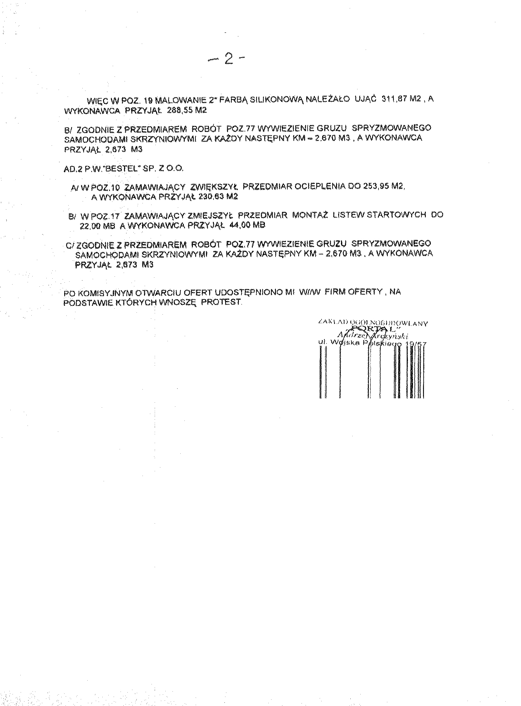Op艂ata za otrzymanie specyfikacji istotnych warunk贸w zam贸wienia b臋dzie pokrywa膰 jedynie koszty jej druku oraz przekazania. Wykonawca zainteresowany post臋powaniem powinien z艂o偶y膰 wniosek u zamawiaj膮cego z podaniem wszystkich danych firmy - niezb臋dnych do przekazywania zmian i zapyta艅 dotycz膮cych powy偶szego post臋powania. 聽 2. Tryb post臋powania: przetarg nieograniczony Rodzaj zam贸wienia: robota budowlana 聽 3. Adres strony internetowej, na kt贸rej dost臋pna jest specyfikacja istotnych warunk贸w zam贸wienia: http://pgkim-inowroclaw.samorzady.pl 聽