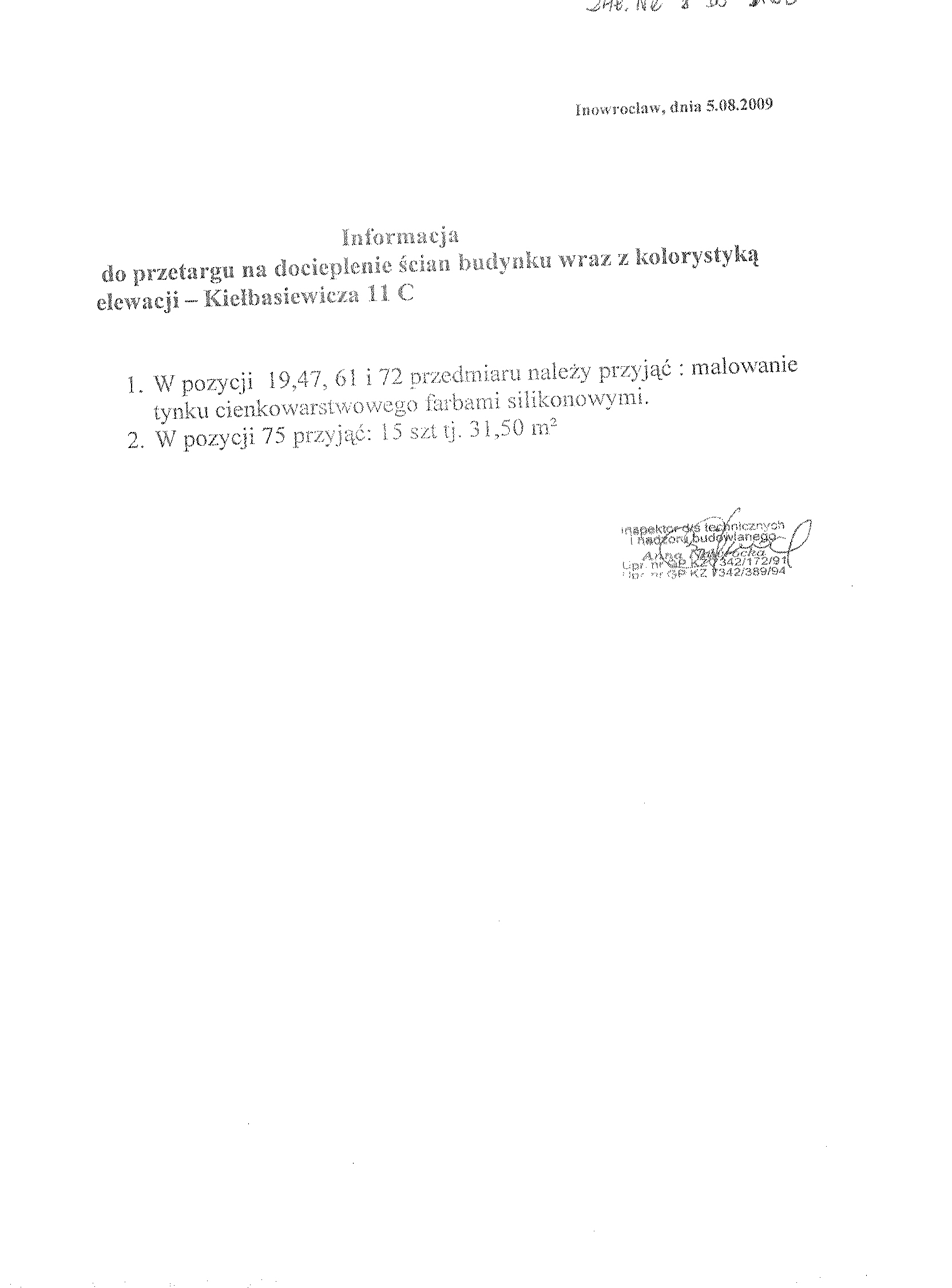 4. Nazwa nadana zam贸wieniu: "Docieplenie 艣cian zewn臋trznych wraz z kolorystyk膮 elewacji budynku mieszkalnego przy ulicy Kie艂basiewicza 11 C w Inowroc艂awiu" 聽