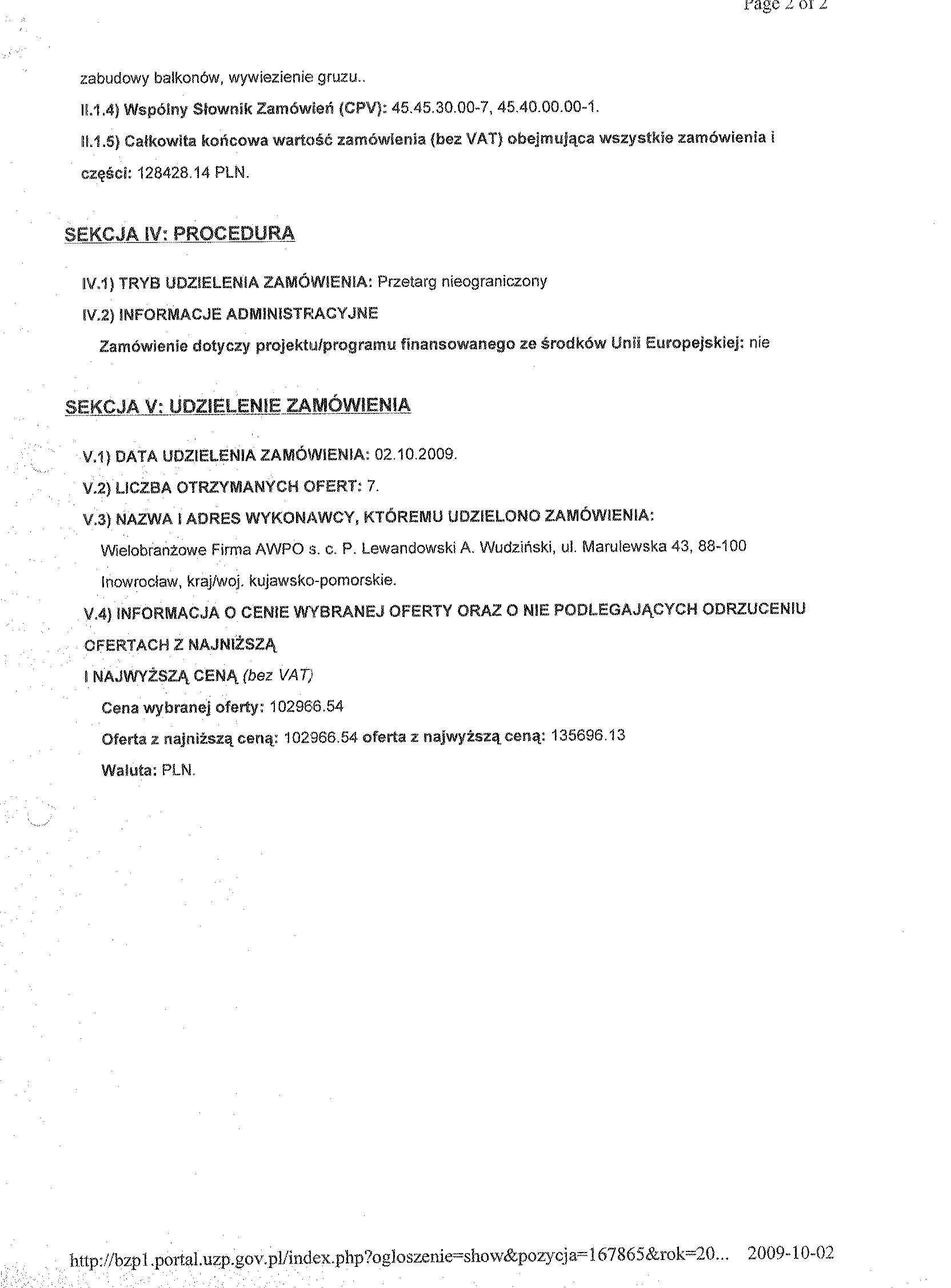 聽 Numer og艂oszenia w BZP: 131403 - 2009; data zamieszczenia 11/08/2009 r. 聽