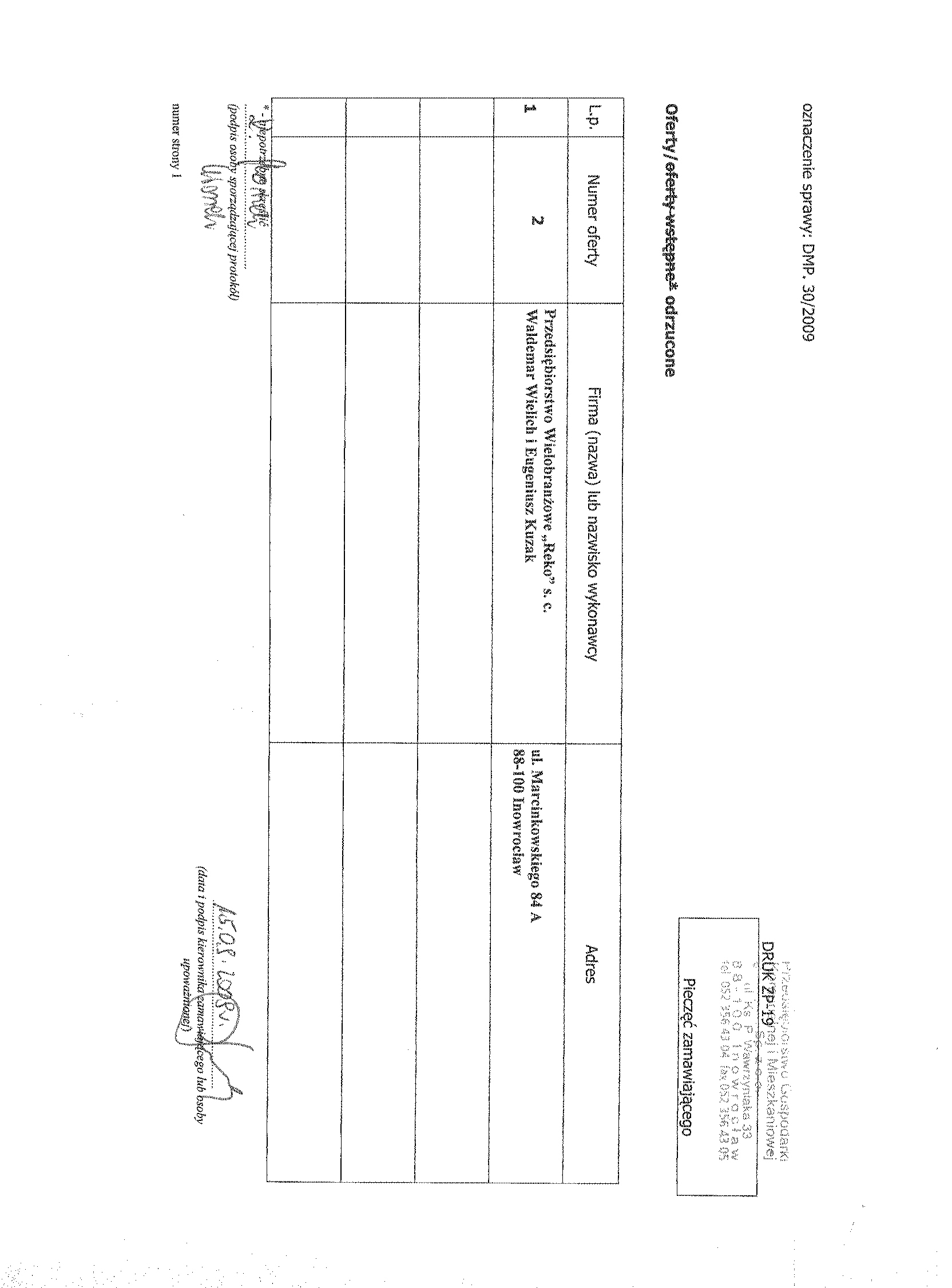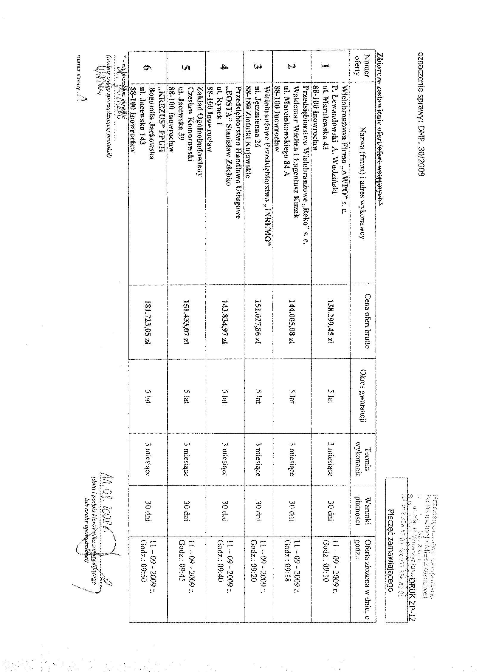 Numer sprawy: DMP. 30/2009聽聽聽聽聽聽聽聽聽聽聽聽聽聽聽聽聽聽聽聽聽聽聽聽聽聽聽聽聽聽聽聽聽聽 nowroc艂aw, dnia 14 sierpnia 2009 r.聽聽 聽