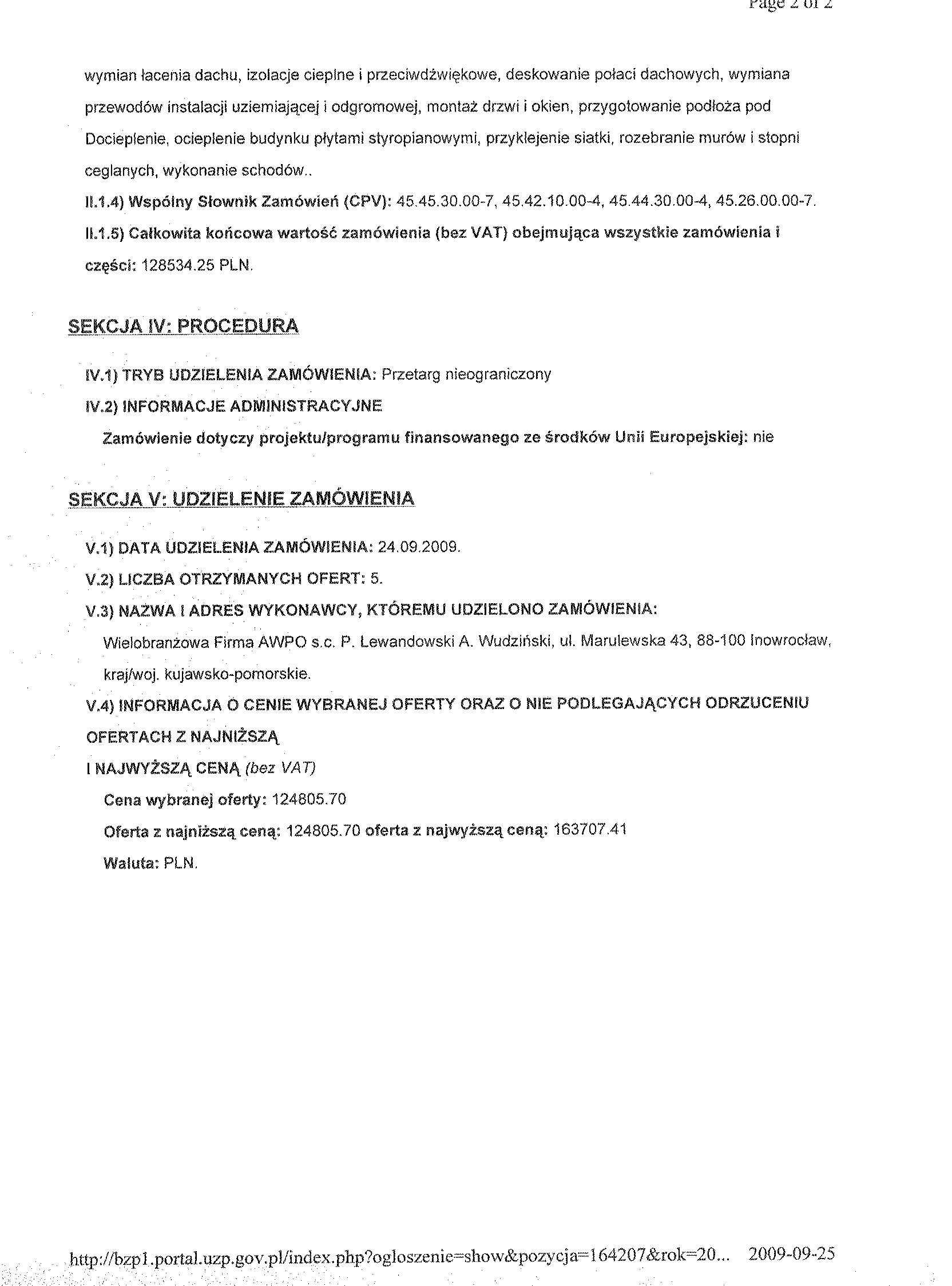 Numer og艂oszenia w BZP: 133885 - 2009; data zamieszczenia 14/08//2009 r. 聽