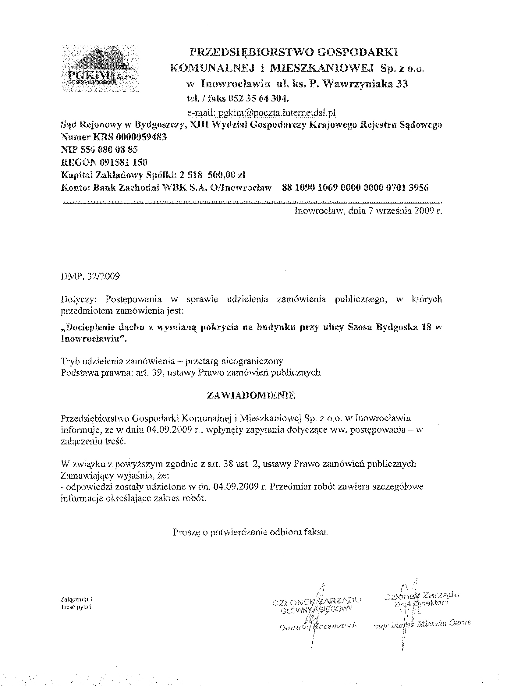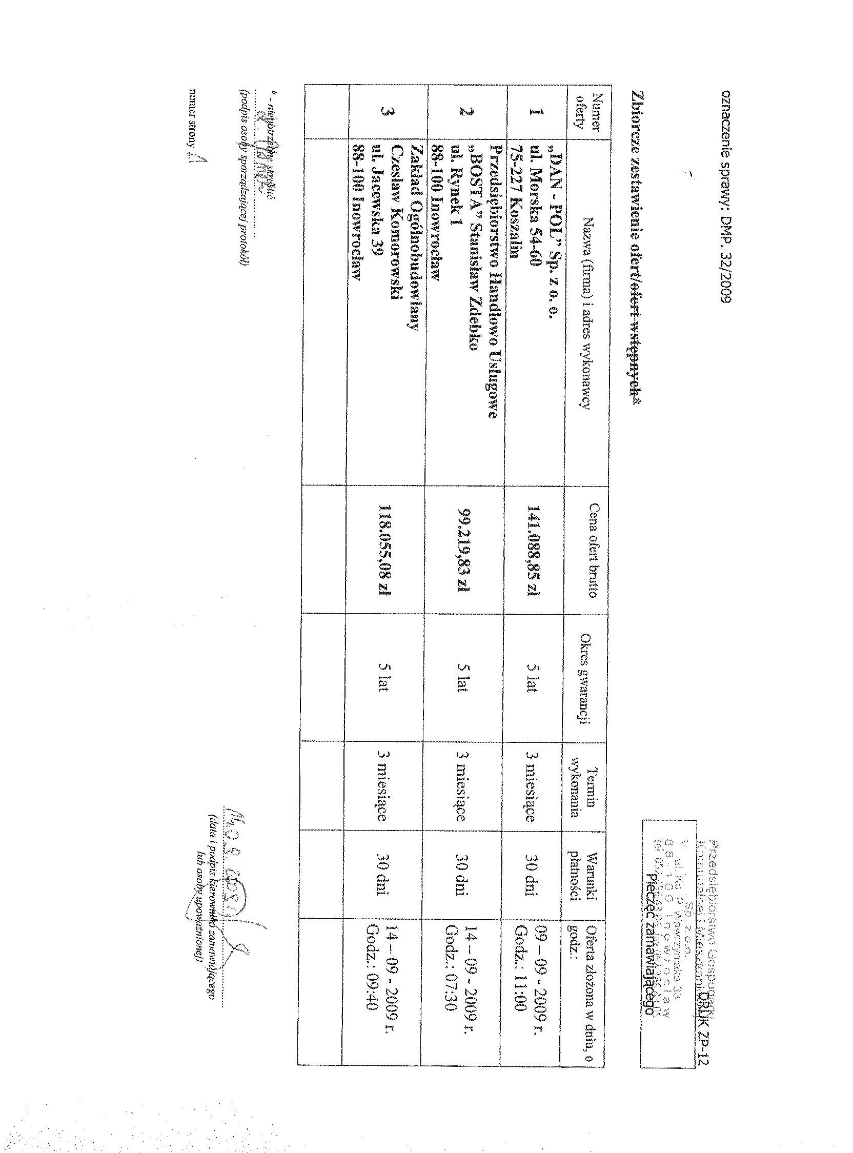Numer sprawy: DMP. 32/2009聽聽聽聽聽聽聽聽聽聽聽聽聽聽聽聽聽聽聽聽聽聽聽聽聽聽聽聽聽聽聽聽聽聽聽Inowroc艂aw, dnia 21 sierpnia 2009 r.聽聽 聽