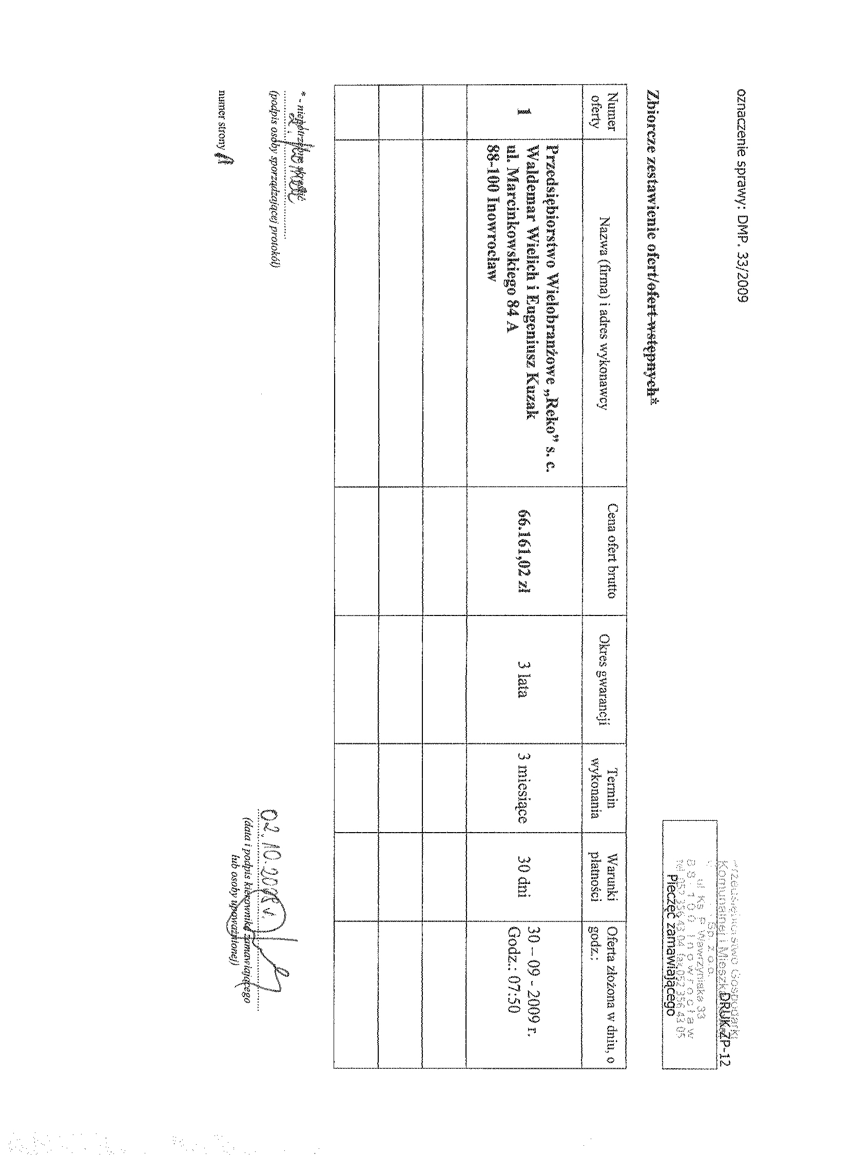 Numer sprawy: DMP. 33/2009聽聽聽聽聽聽聽聽聽聽聽聽聽聽聽聽聽聽聽聽聽聽聽聽聽聽聽聽聽聽聽聽聽聽聽聽聽Inowroc艂aw, dnia 8 wrze艣nia 2009 r.聽聽 聽
