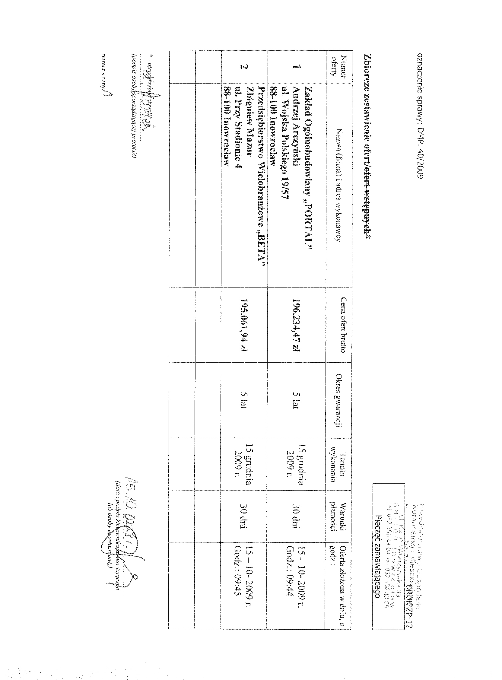 Numer sprawy: DMP. 40/2009聽聽聽聽聽聽聽聽聽聽聽聽聽聽聽聽聽聽聽聽聽聽聽聽聽聽聽聽聽聽聽聽聽聽聽Inowroc艂aw, dnia 24 wrze艣nia 2009 r.聽聽 聽