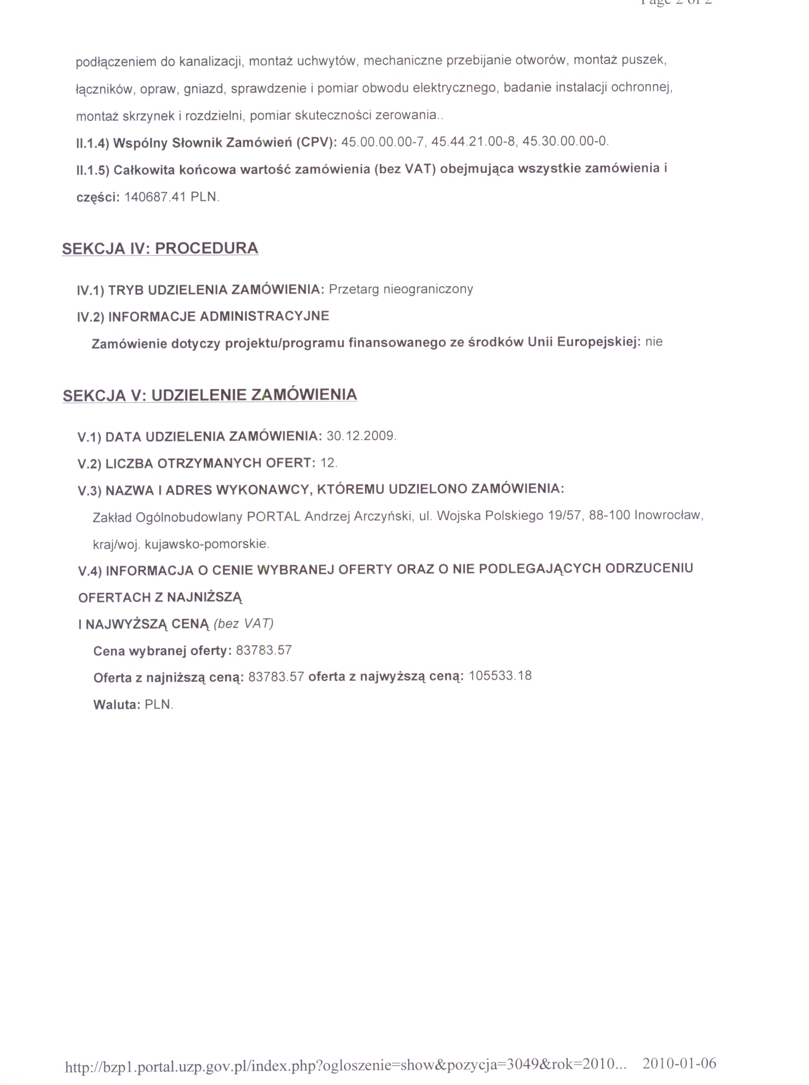 Numer og艂oszenia w BZP: 211717 - 2009; data zamieszczenia 17/11/2009 r. 聽