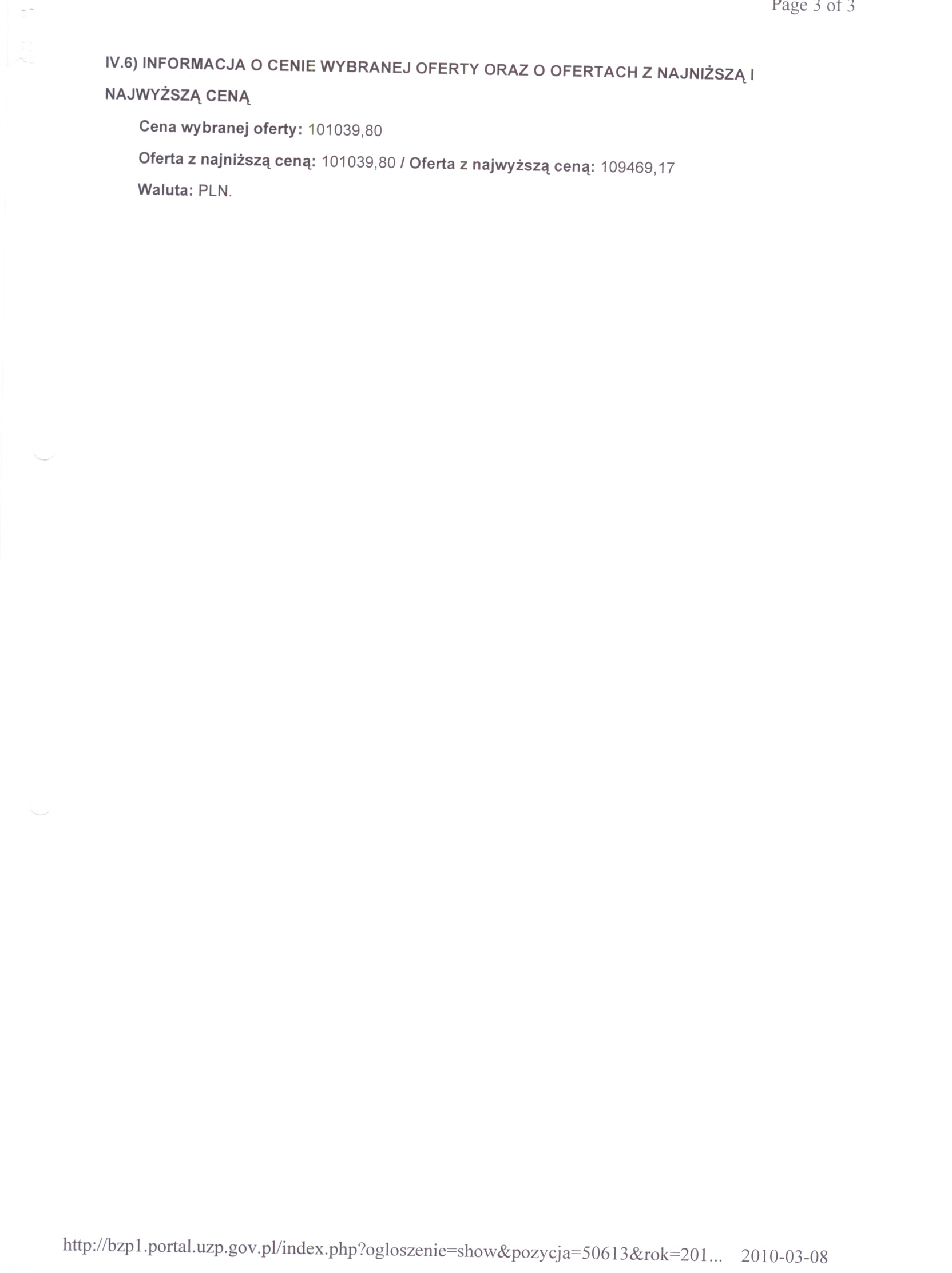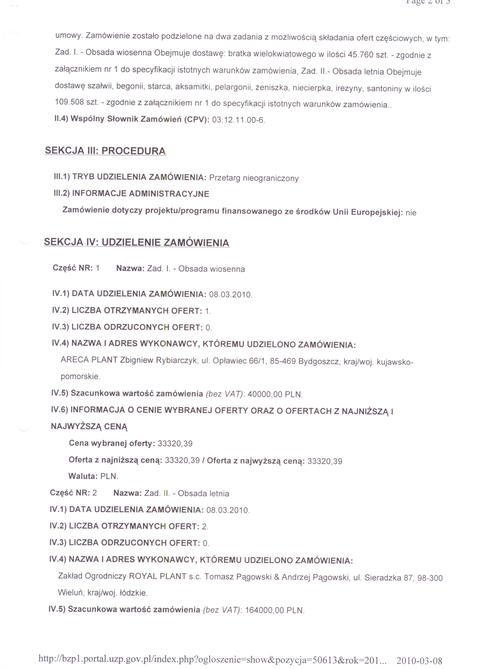 3) Czas trwania lub termin wykonania: Zako艅czenie: 30.03.2010.