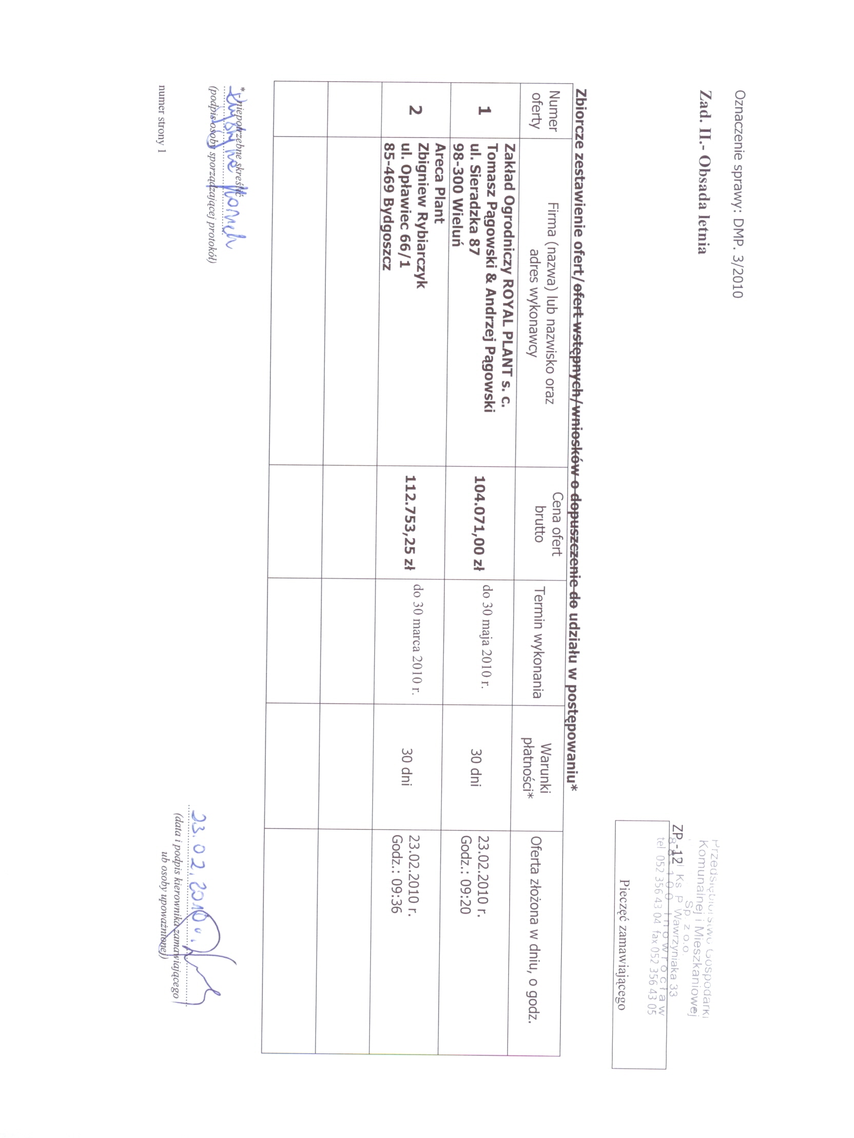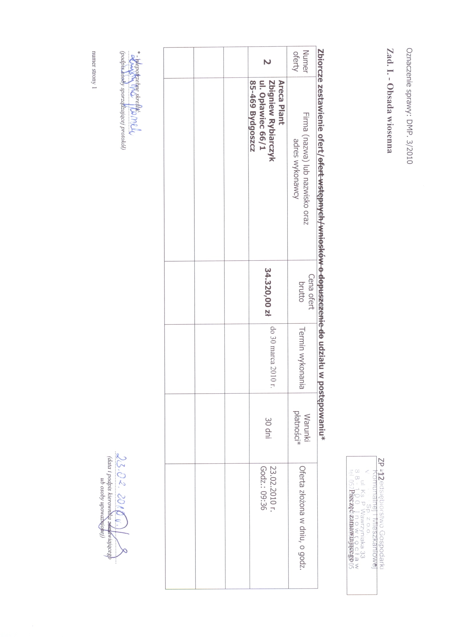 IV.4.4) Termin sk艂adania wniosk贸w o dopuszczenie do udzia艂u w post臋powaniu lub ofert: 23.02.2010 godzina 09:50, miejsce: Przedsiebiorstwo Gospodarki Komunalnej i Mieszkaniowej sp. zo.o., ul. ks. Piotra Wawrzyniak 33, 88-100 Inowroc艂aw, sekretariat 1 pi臋tro..