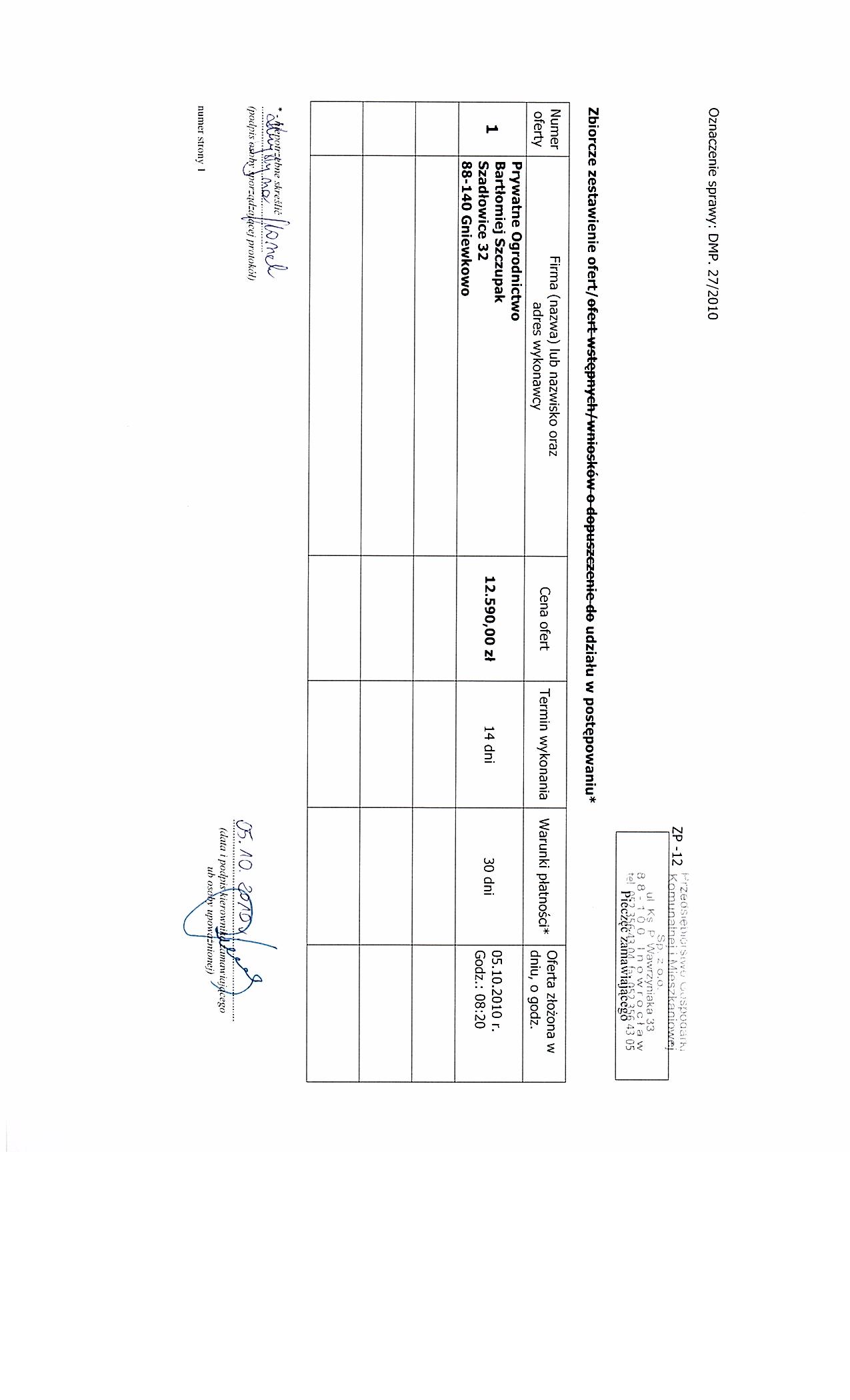 IV.4.4) Termin sk艂adania wniosk贸w o dopuszczenie do udzia艂u w post臋powaniu lub ofert: 05.10.2010 godzina 09:50, miejsce: Przedsi臋biorstwo Gospodarki Komunalnej i Mieszkaniowej sp. z o. o., ul. ks. Piotra Wawrzyniak 33, 88-100 Inowroc艂aw, sekretariat 1 pi臋tro..