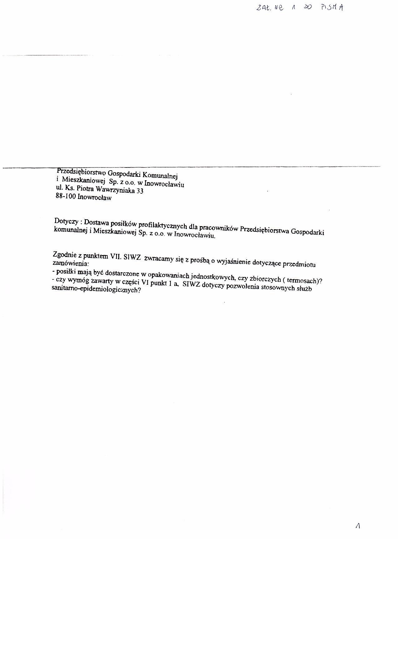 Dostawa posi艂k贸w profilaktycznych dla pracownik贸w Przedsi臋biorstwa Gospodarki Komunalnej i Mieszkaniowej Sp. z o. o. w Inowroc艂awiu