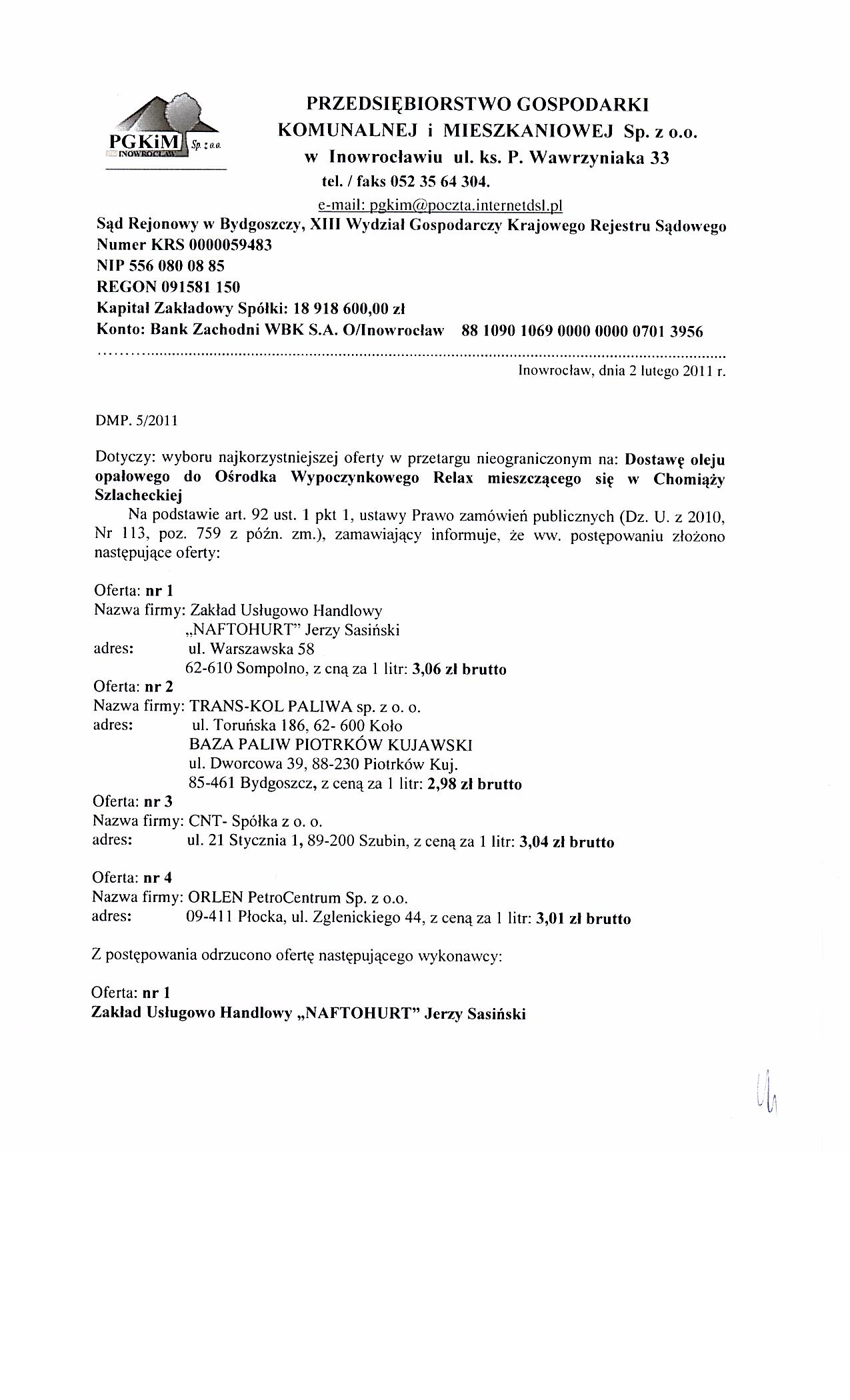 | Typ | Rozmiar | Pobierz | Komentarz | Data dodania | Licznik | ? | 23.4 KB | POBIERZ | Ogłoszenie | 2011-01-18 11:54:45 | 455 | .DOC | 284 KB | POBIERZ | Specyfikacja istotnych warunków zamówienia | 2011-01-18 11:55:14 | 608 | graf. | 231.6 KB | POBIERZ | Wybór najkorzystniejszej oferty | 2011-02-02 12:04:19 | 472 | graf. | 141.4 KB | POBIERZ | s.2 | 2011-02-02 12:04:30 | 506 | ? | 16.6 KB | POBIERZ | Ogłoszenie o udzieleniu zamówienia BZP nr 48341-2011 | 2011-02-10 10:44:36 | 442 |