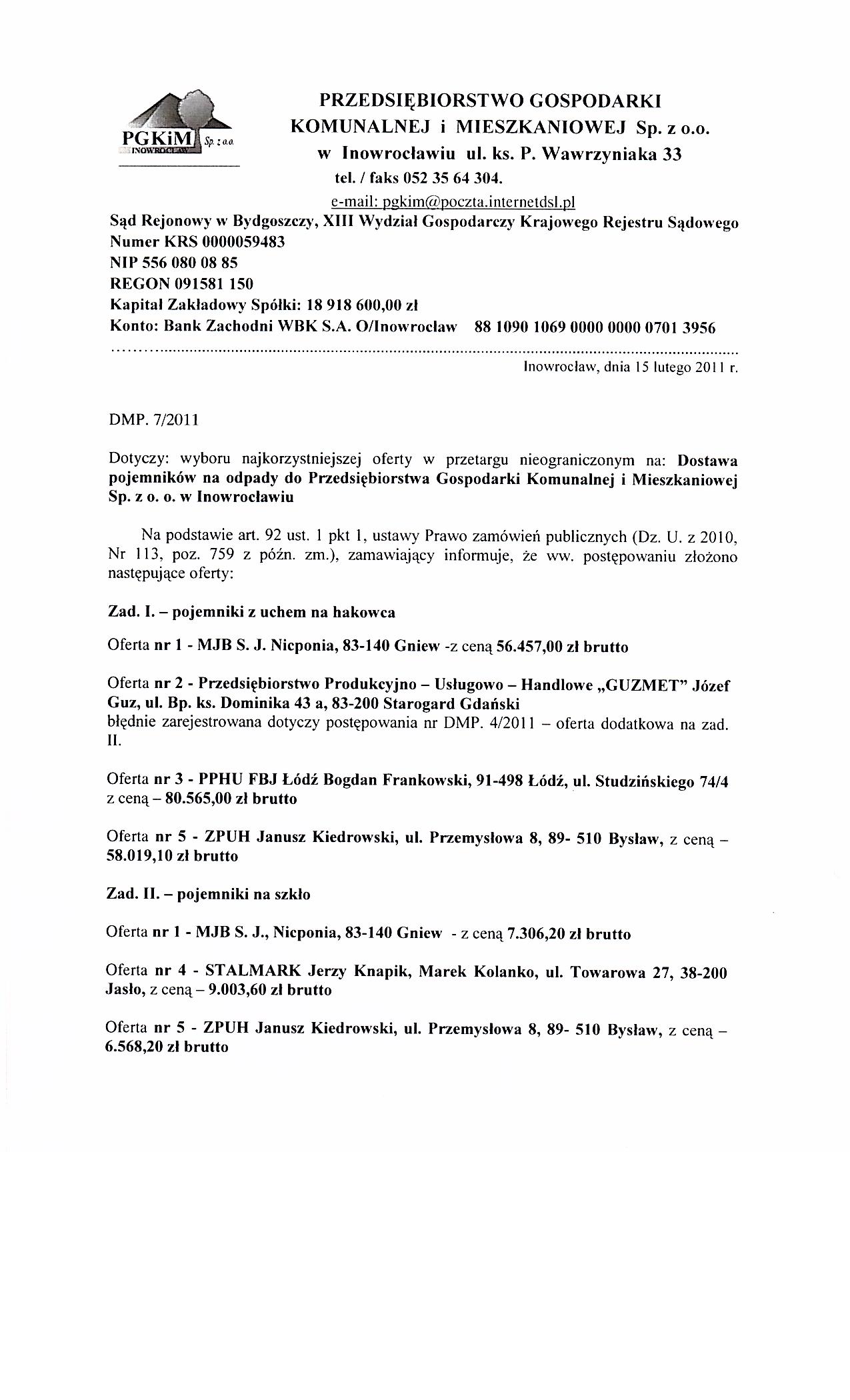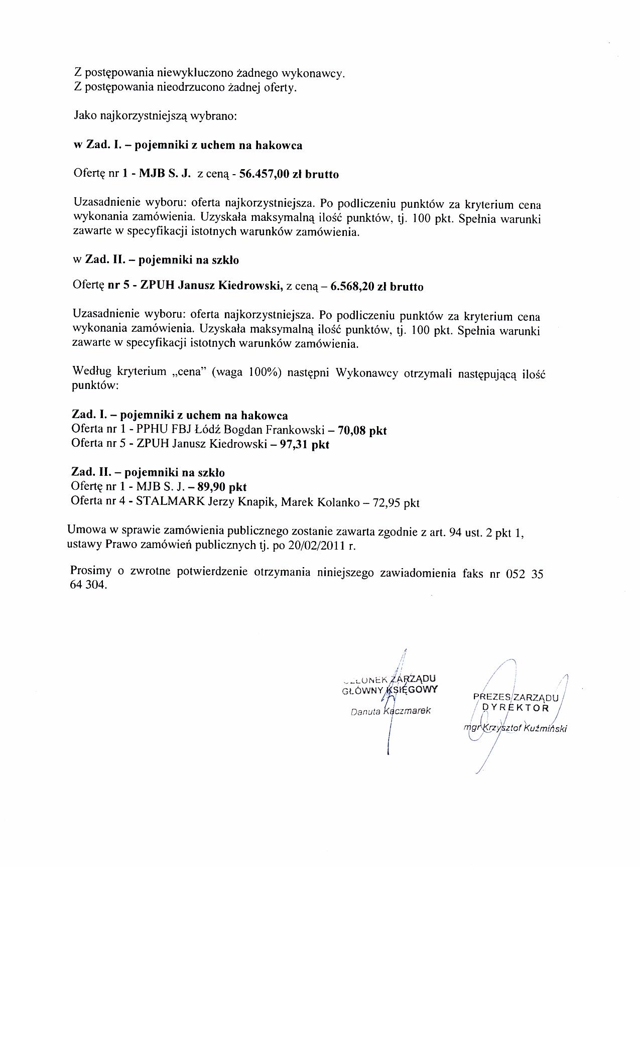 | Typ | Rozmiar | Pobierz | Komentarz | Data dodania | Licznik | ? | 24.2 KB | POBIERZ | Og艂oszenie | 2011-01-28 11:11:43 | 432 | .DOC | 288 KB | POBIERZ | Specyfikacja istotnych warunk贸w zam贸wienia | 2011-01-28 11:12:53 | 577 | graf. | 250.5 KB | POBIERZ | Wyb贸r najkorzystniejszej oferty | 2011-02-15 12:18:31 | 467 | graf. | 202.6 KB | POBIERZ | s.2 | 2011-02-15 12:18:43 | 418 | ? | 18.6 KB | POBIERZ | Og艂oszenie o udzieleniu zam贸wienia BZP nr 64029-2011 | 2011-02-24 11:39:39 | 412 |