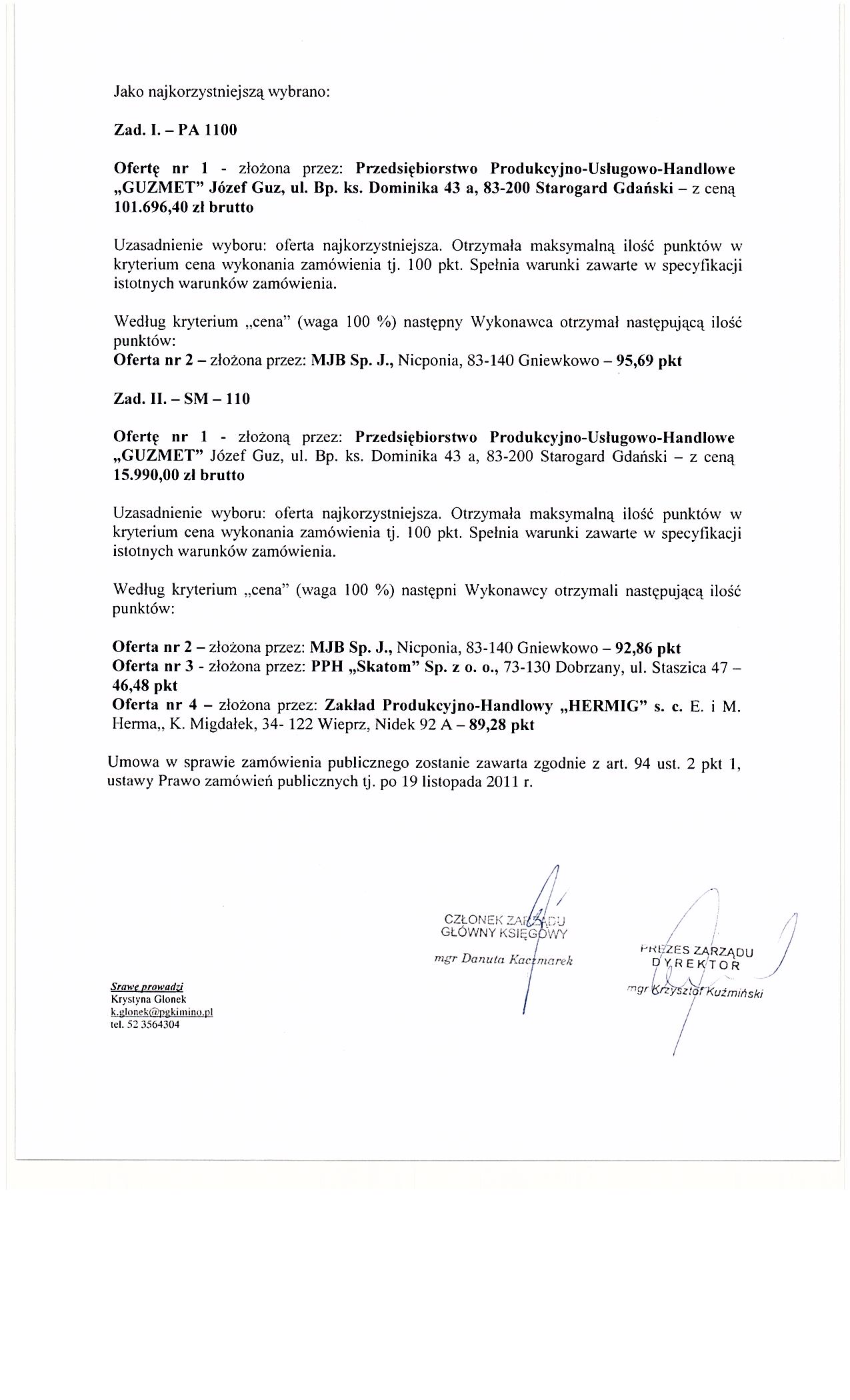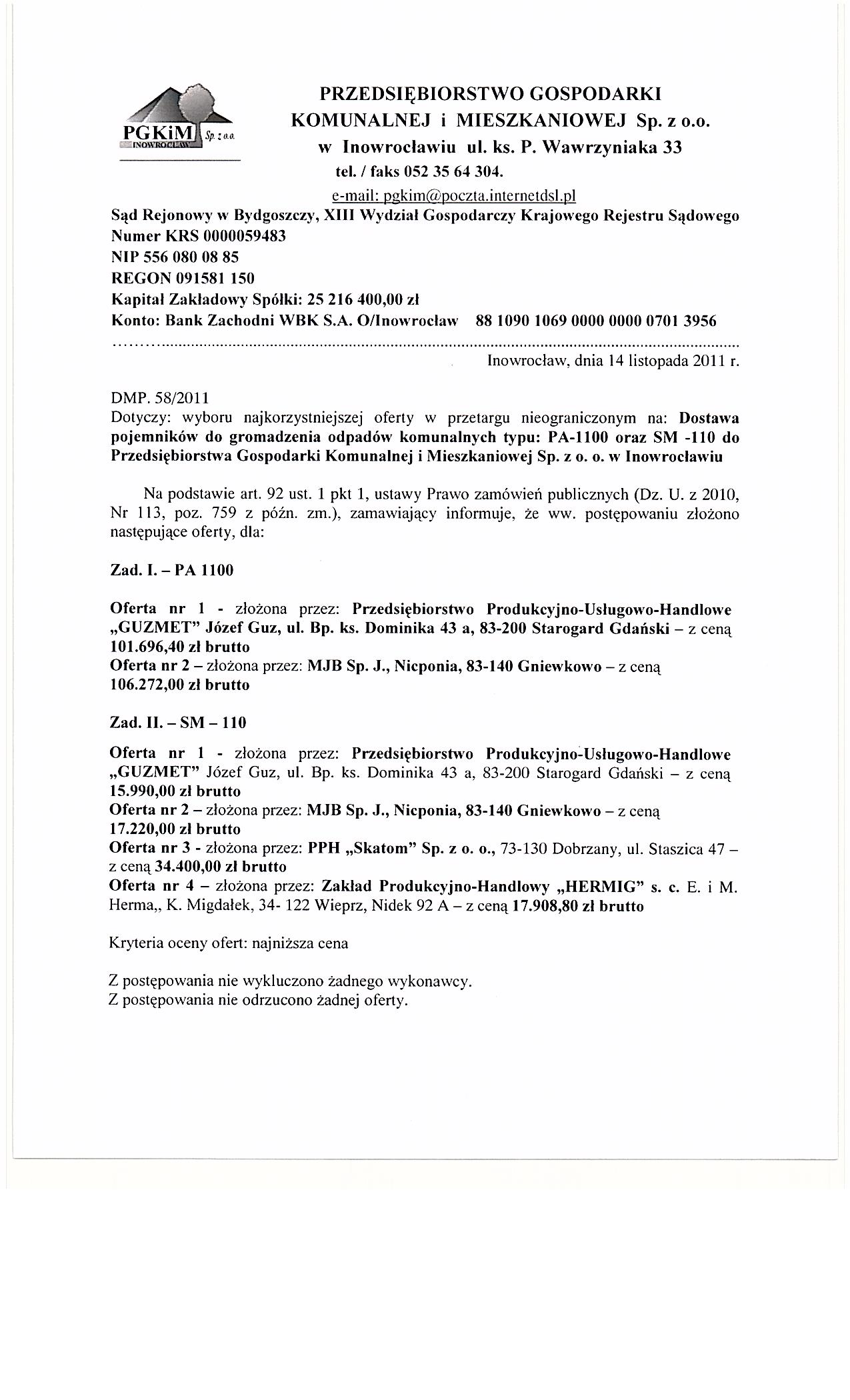 | Typ | Rozmiar | Pobierz | Komentarz | Data dodania | Licznik | ? | 24.4 KB | POBIERZ | Og艂oszenie | 2011-10-24 10:07:03 | 405 | .DOC | 292 KB | POBIERZ | Specyfikacja istotnych warunk贸w zam贸wienia | 2011-10-24 10:07:39 | 543 | graf. | 212.8 KB | POBIERZ | Odpowiedzi na zapytania | 2011-10-26 10:50:15 | 517 | graf. | 115.6 KB | POBIERZ | Tre艣膰 pyta艅 | 2011-10-26 10:50:34 | 548 | graf. | 275.8 KB | POBIERZ | Wyb贸r oferty | 2011-11-14 09:51:46 | 420 | graf. | 239.1 KB | POBIERZ | s.2 | 2011-11-14 09:52:18 | 446 | ? | 18.5 KB | POBIERZ | Og艂oszenie o udzieleniu zam贸wienia BZP nr 305823-2011 | 2011-11-23 10:58:03 | 385 |