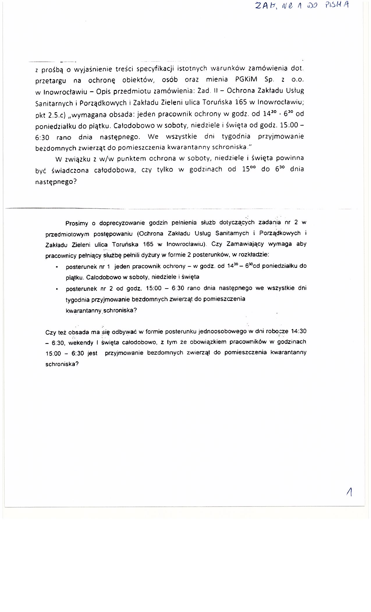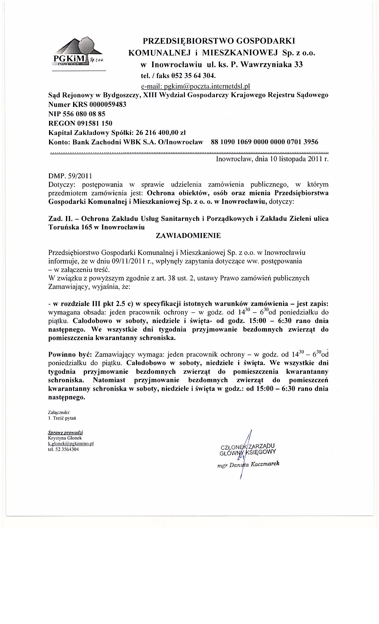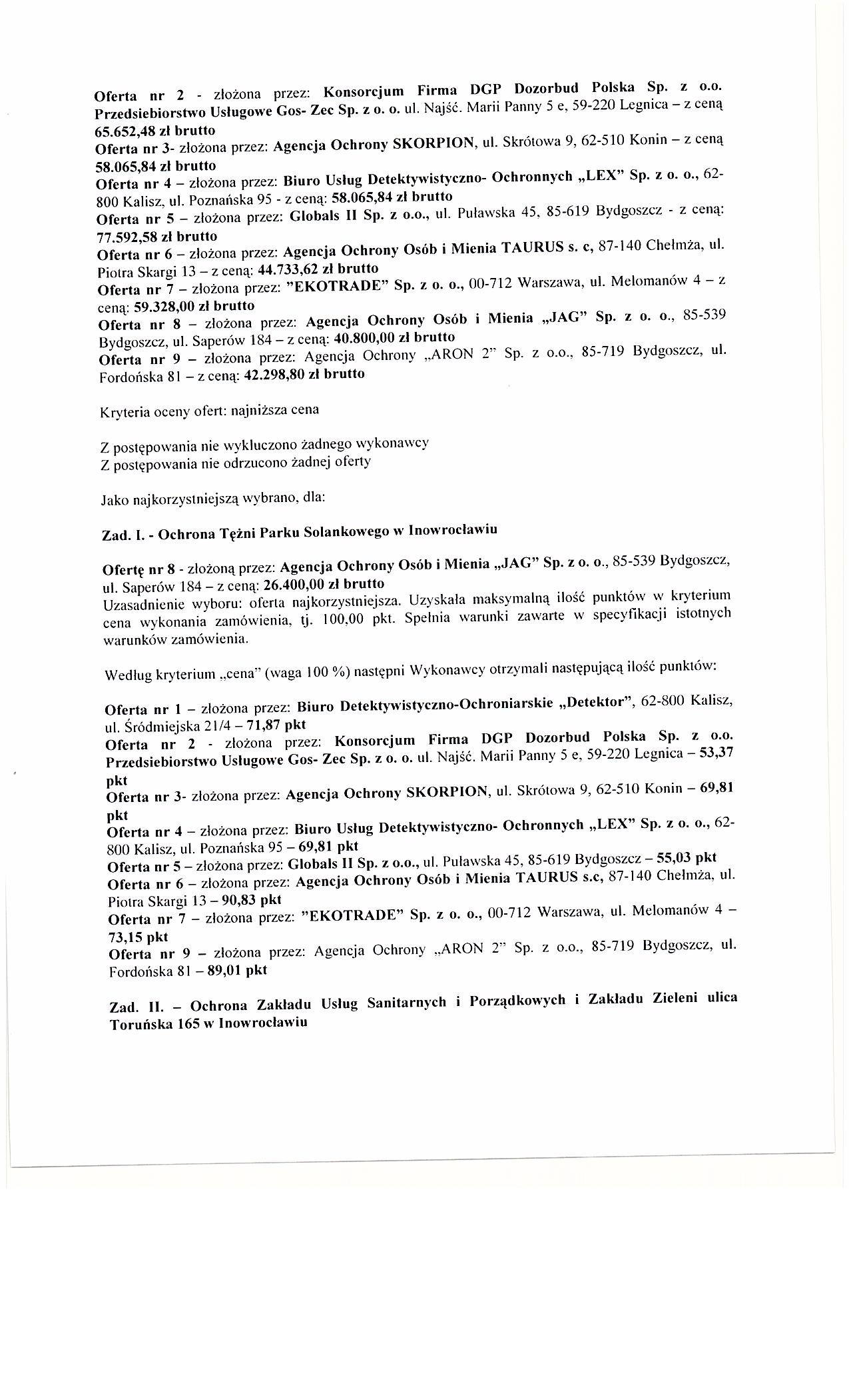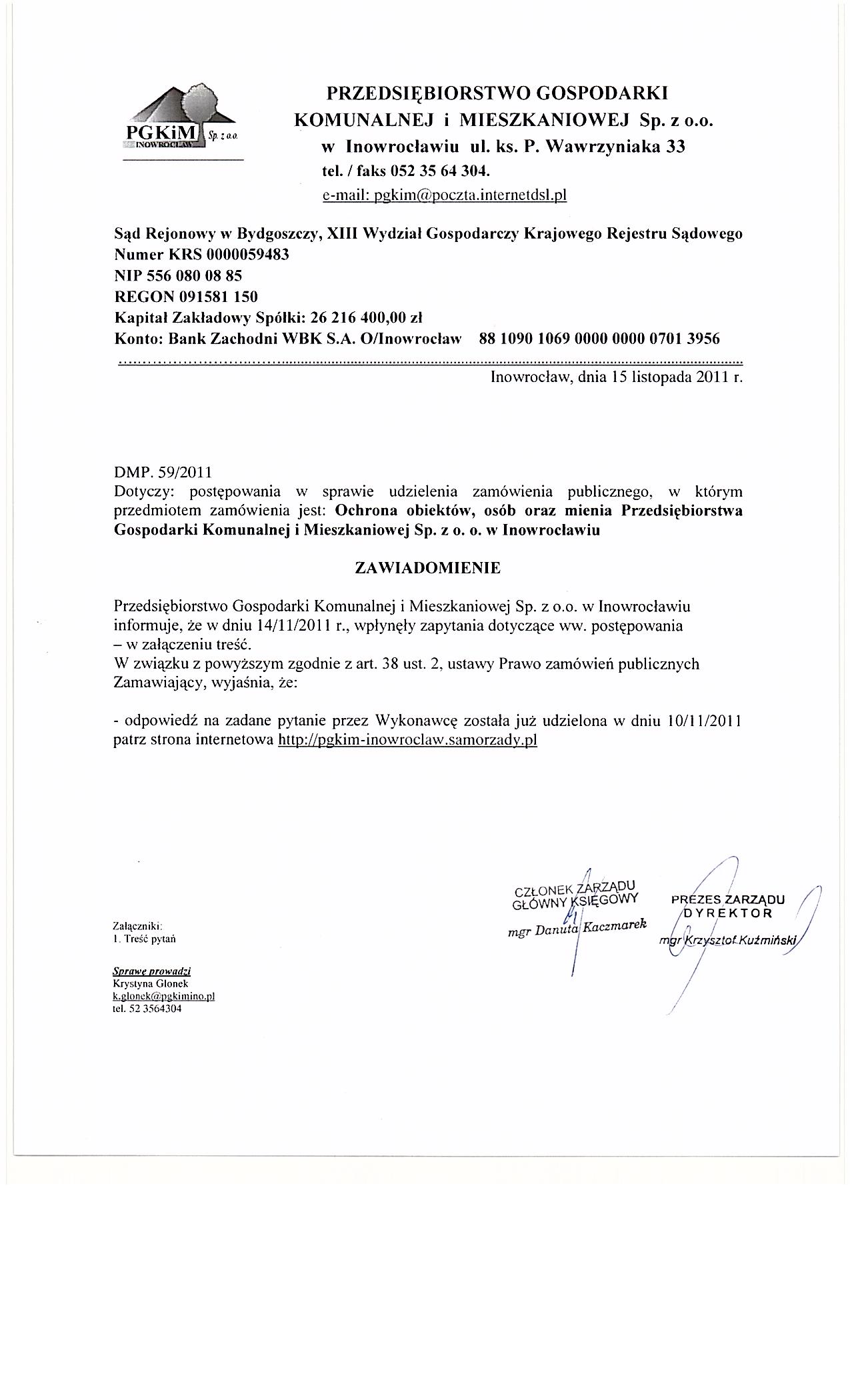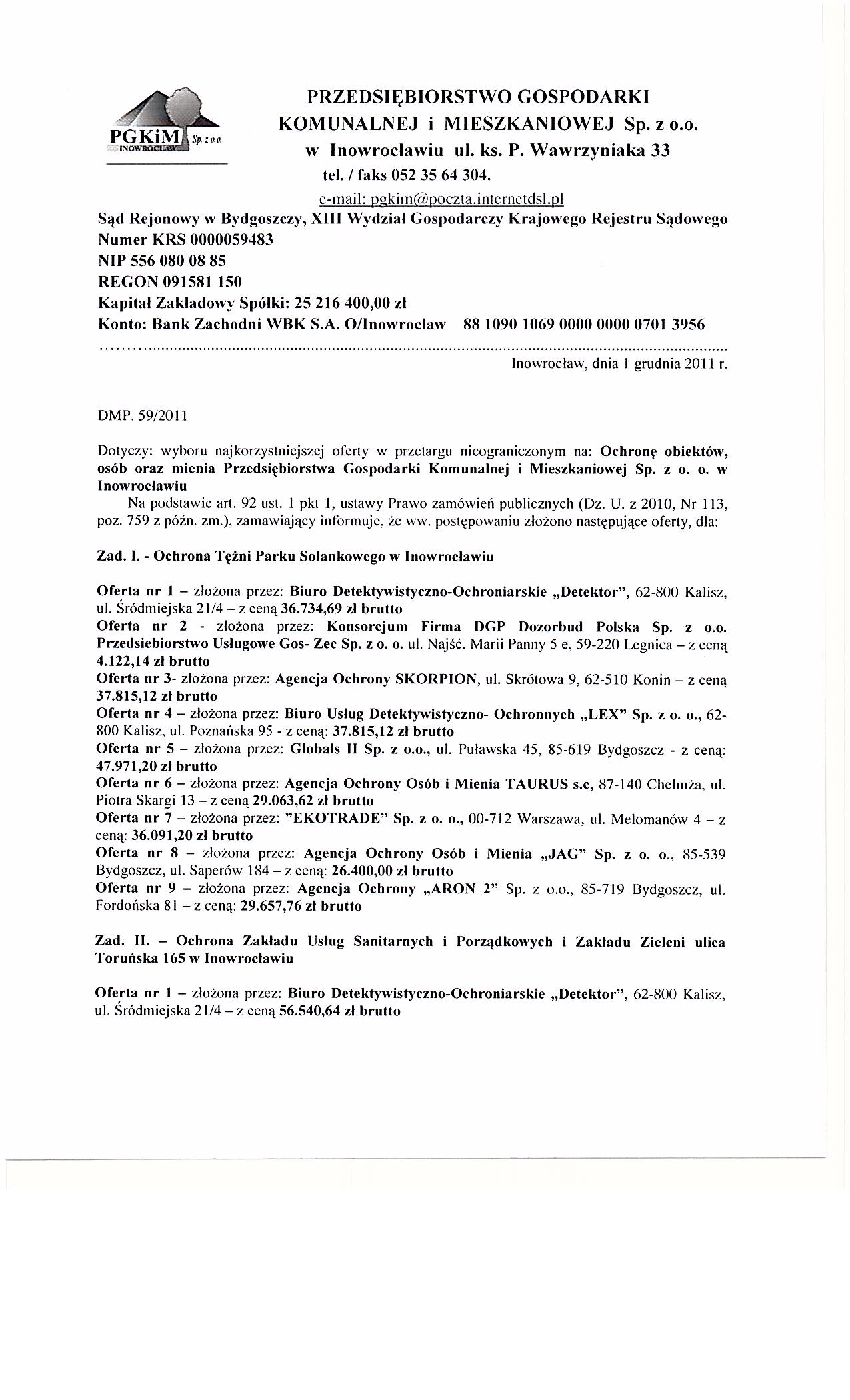 Ochrona obiekt贸w, os贸b oraz mienia Przedsi臋biorstwa Gospodarki Komunalnej i Mieszkaniowej Sp. z o. o. w Inowroc艂awiu