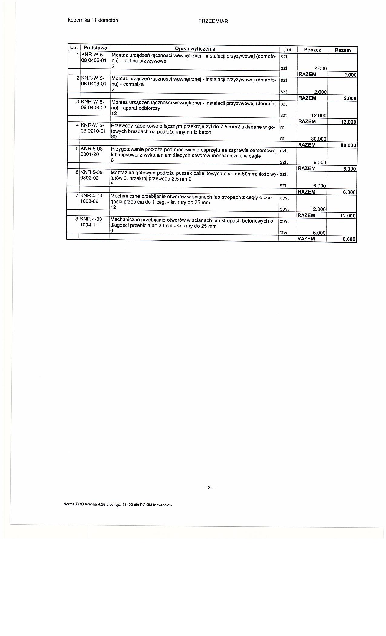 Remont i wymiana instalacji elektrycznej w klatchach schodowych budynków Współnot Mieszkaniowych przy ulicy Wilkońskiego nr 35 (I,II i III kl.), Kopernika nr 11 (I i II kl. z wymianą instalacji domofonowej) oraz Armii Krajowej nr 16 (tylko IV kl.) w Inowrocławiu.
