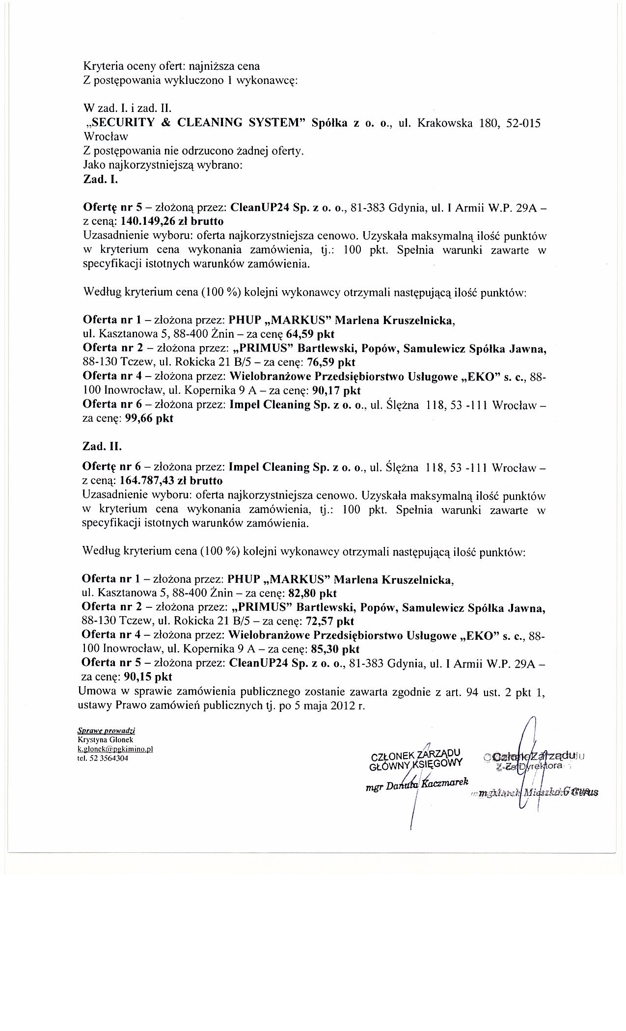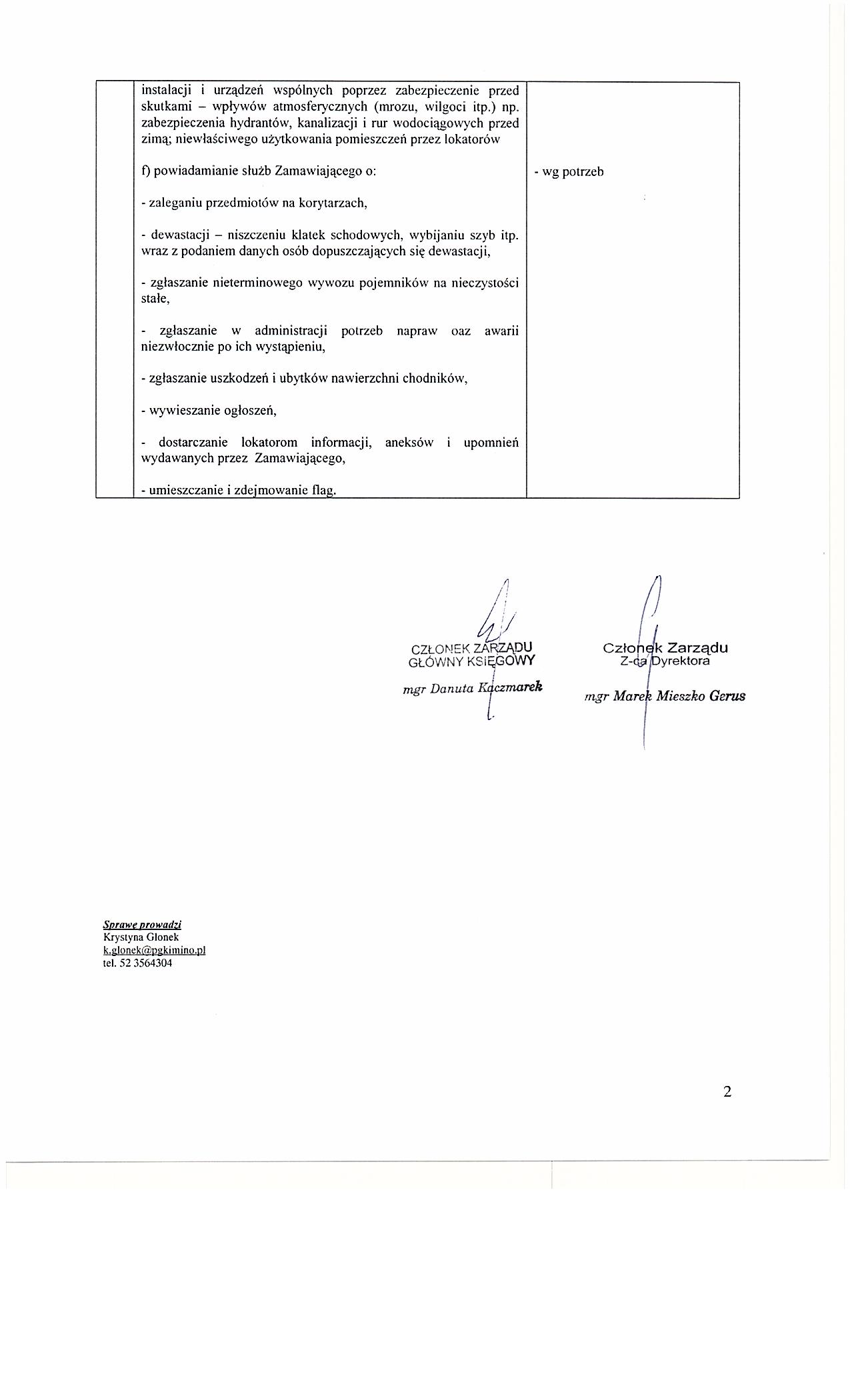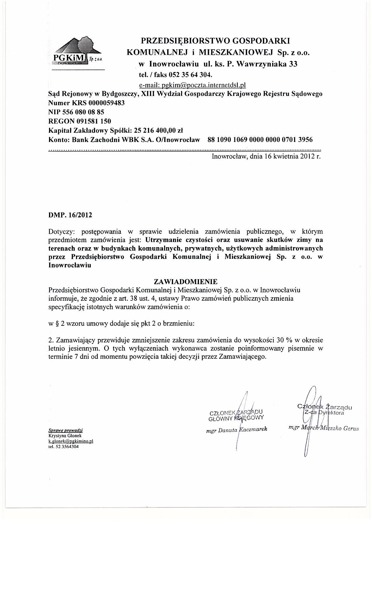 Utrzymanie czystości oraz usuwanie skutków zimy na terenach oraz w budynkach komunalnych, prywatnych, użytkowych administrowanych przez Przedsiębiorstwo Gospodarki Komunalnej i Mieszkaniowej Sp. z o. o. w Inowrocławiu