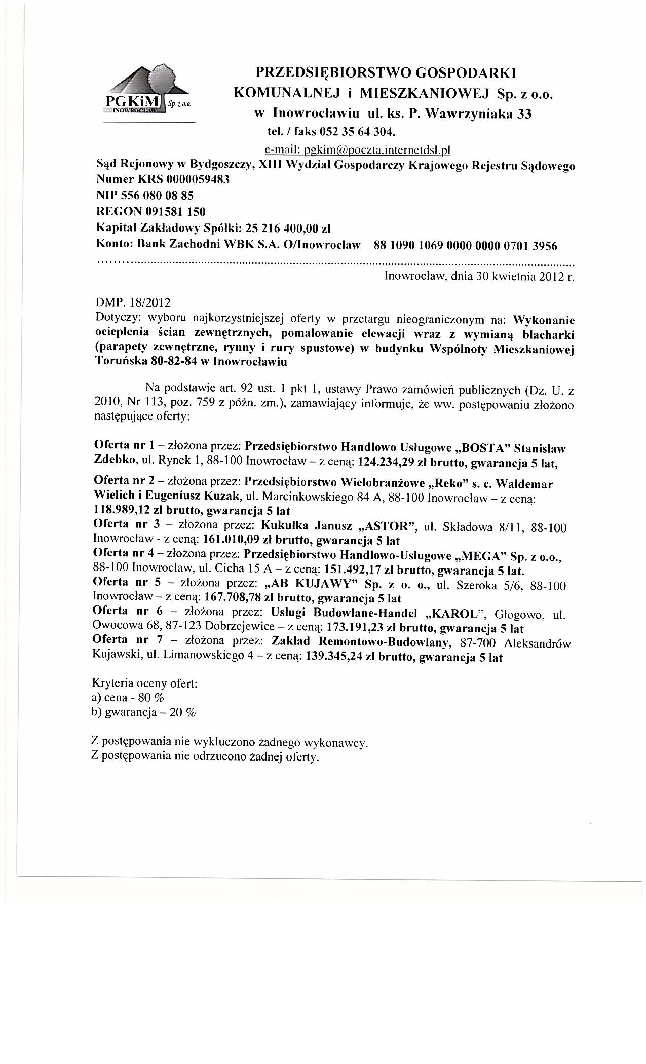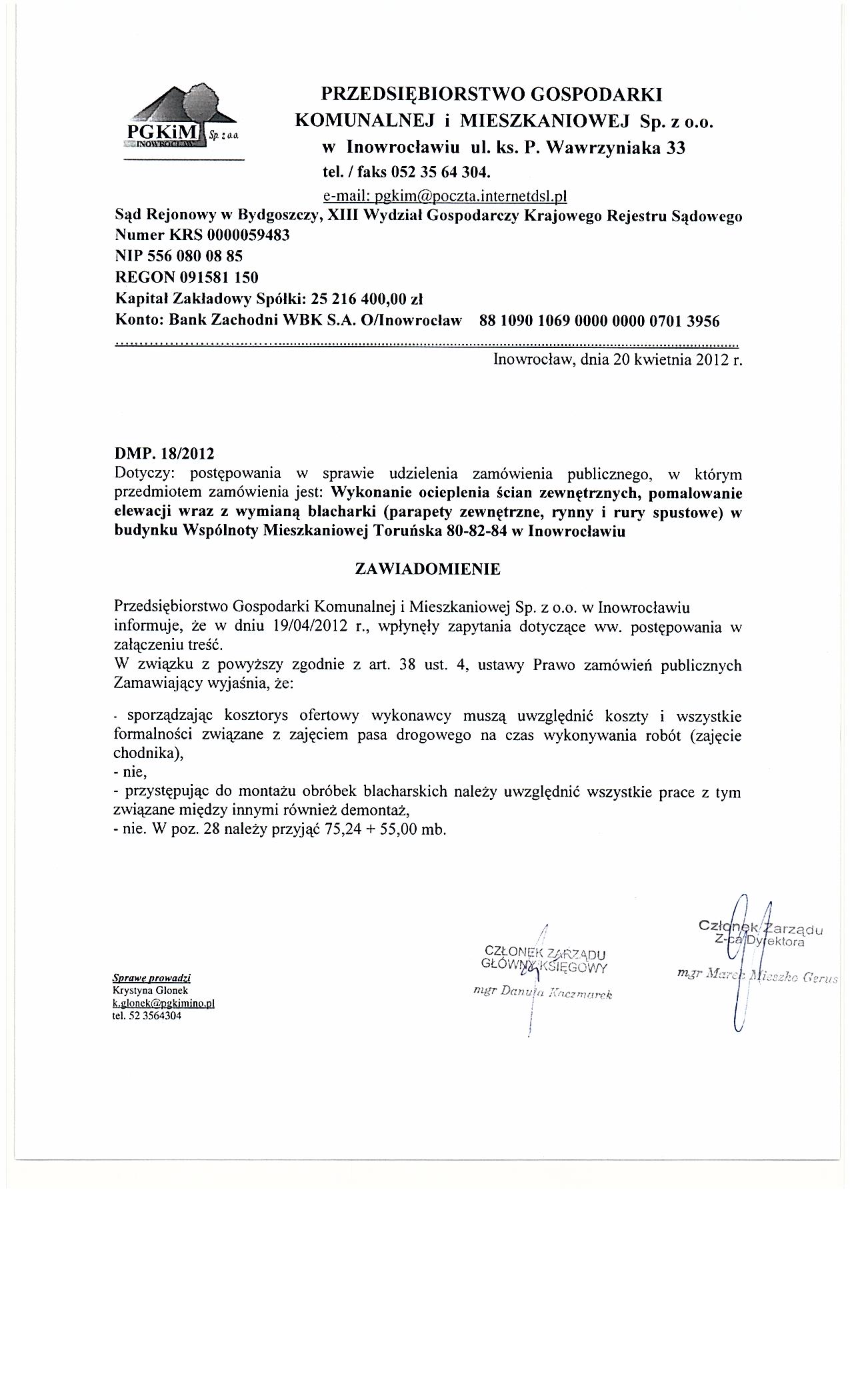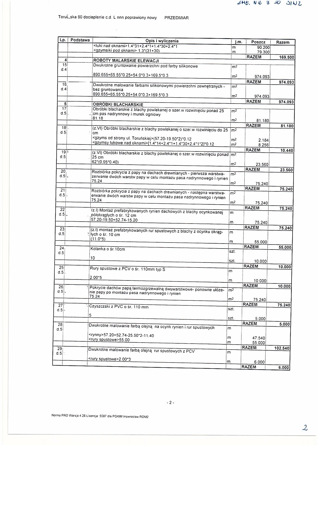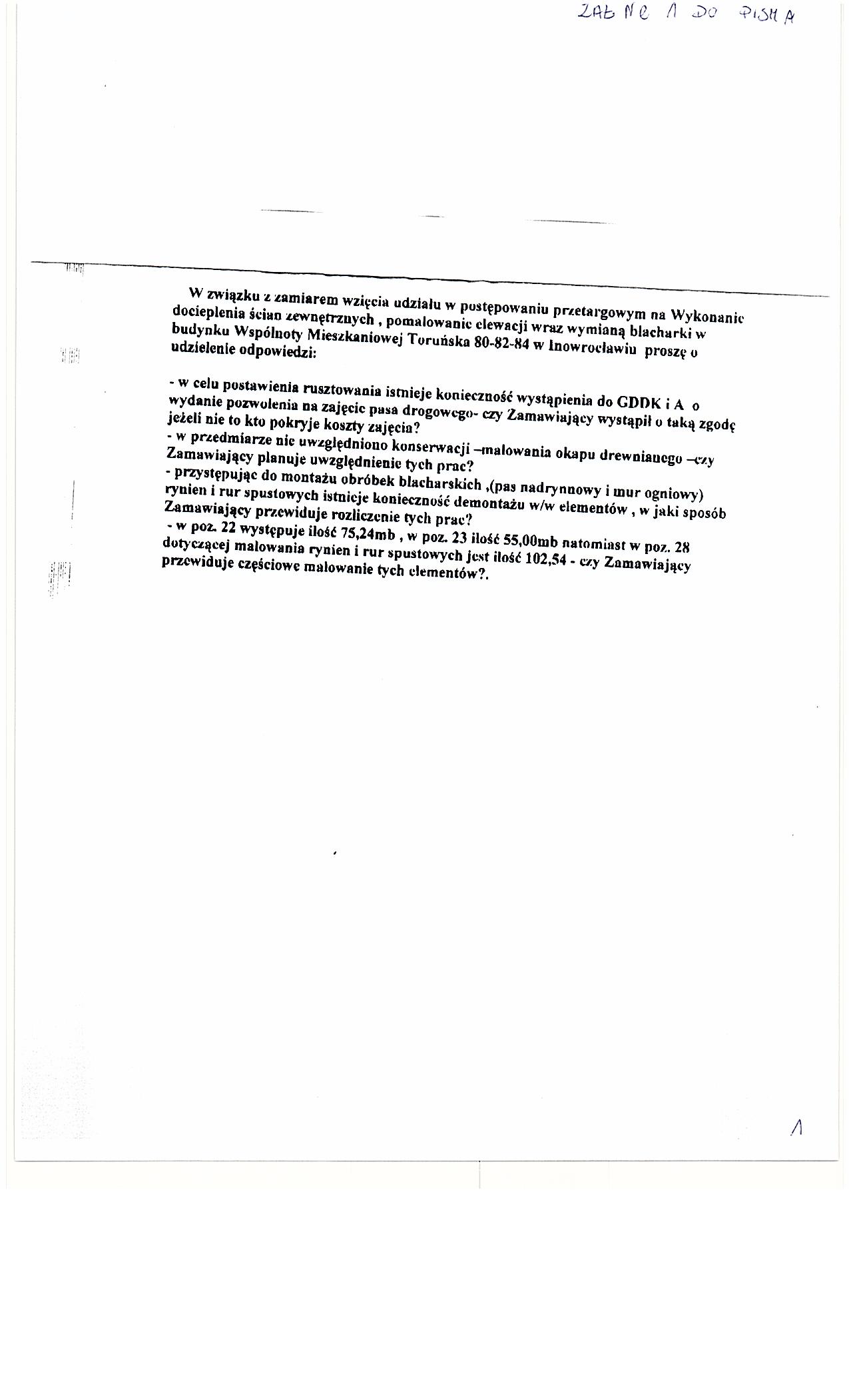 Wykonanie ocieplenia 艣cian zewn臋trznych, pomalowanie elewacji wraz z wymian膮 blacharki (parapety zewn臋trzne, rynny i rury spustowe) w budynku Wsp贸lnoty Mieszkaniowej Toru艅ska 80-82-84 w Inowroc艂awiu