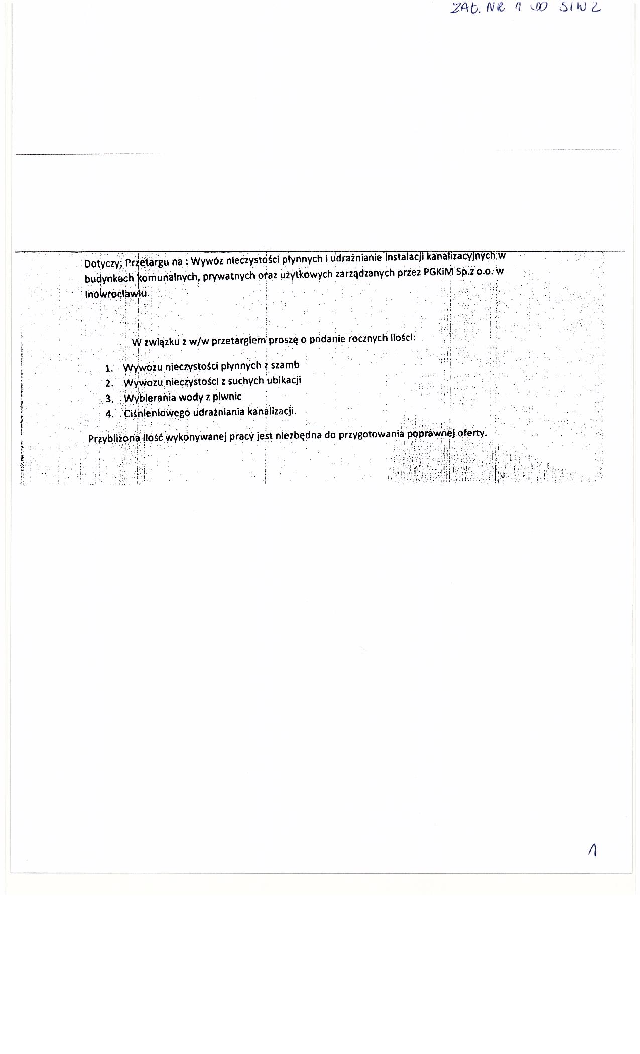Wywóz nieczystości płynnych i udrażnianie instalacji kanalizacyjnych w budynkach komunalnych, prywatnych oraz użytkowych zarządzanych przez Przedsiębiorstwo Gospodarki Komunalnej i Mieszkaniowej Sp. z o. o. w Inowrocławiu